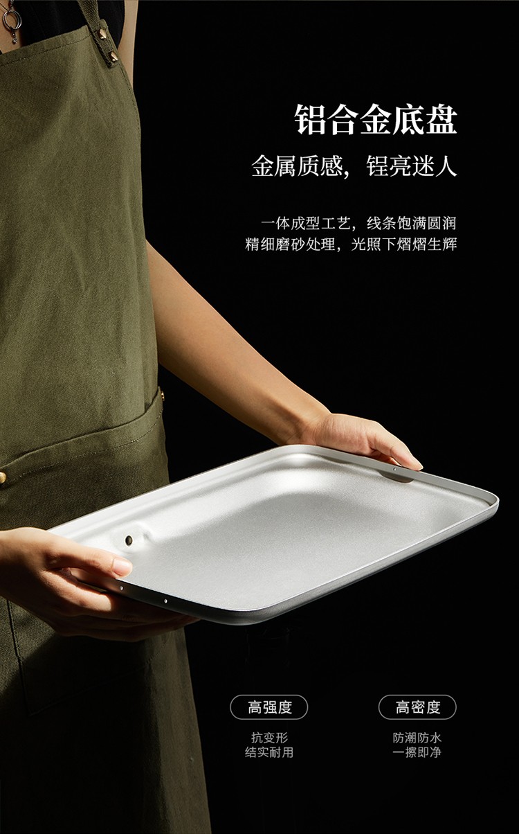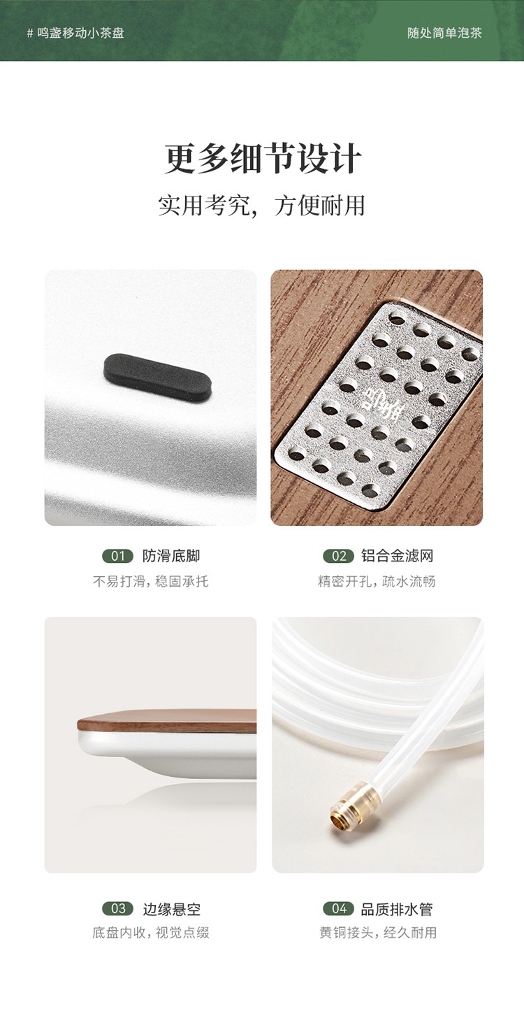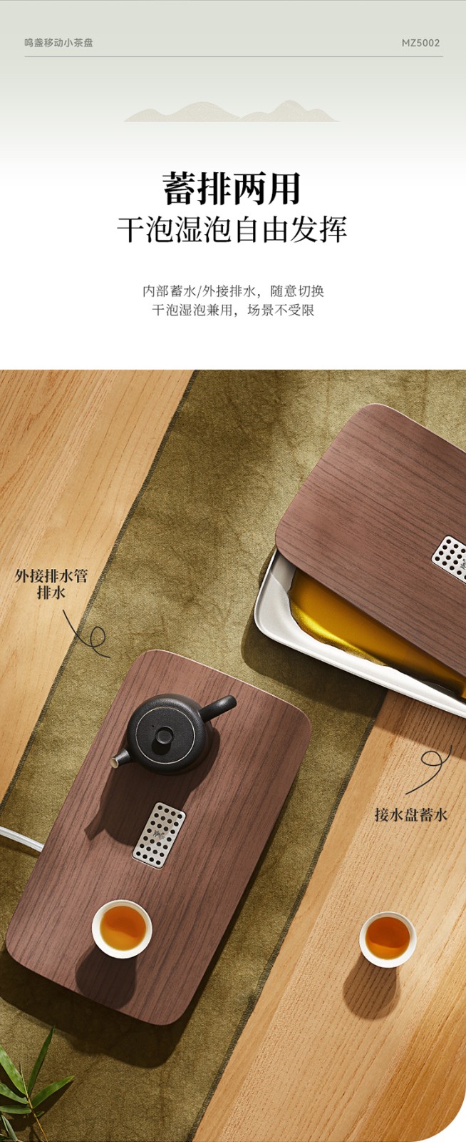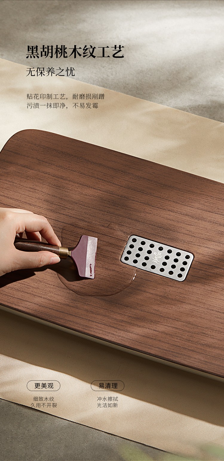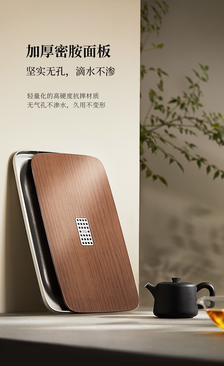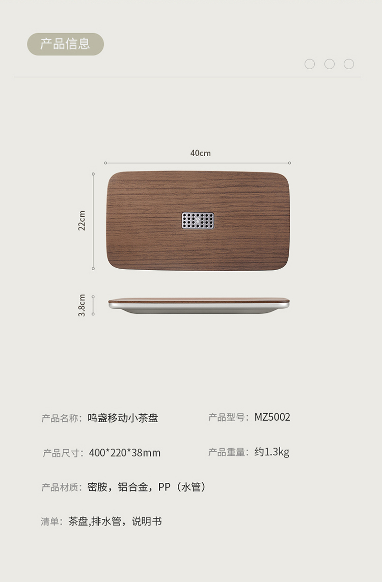 商品名称:(超运·禾贸)鸣盏黑胡桃木小茶盘MZ5002 移动小茶盘家用储蓄水干泡茶台办公室带排水式铝合金托盘功夫茶具 (40×22×3.8厘米)