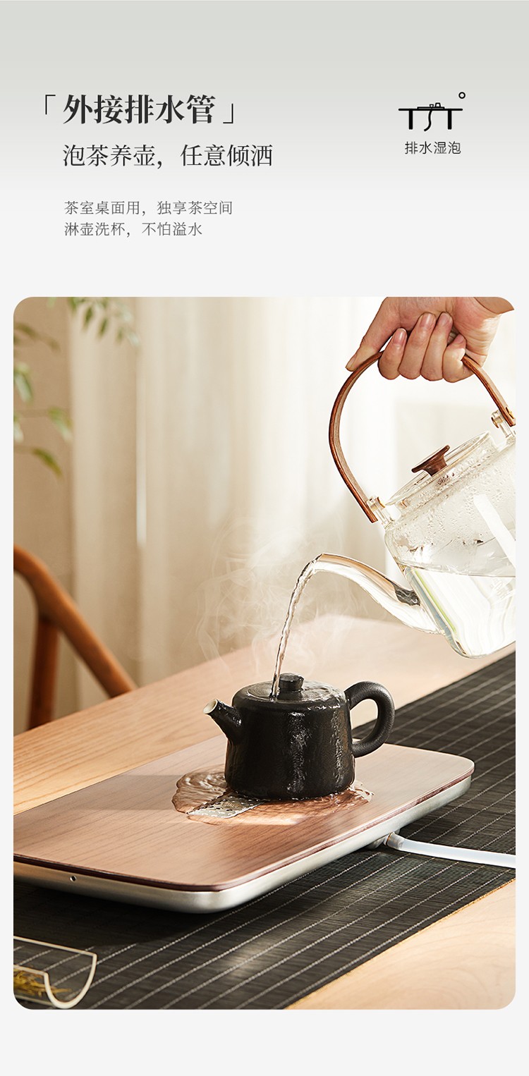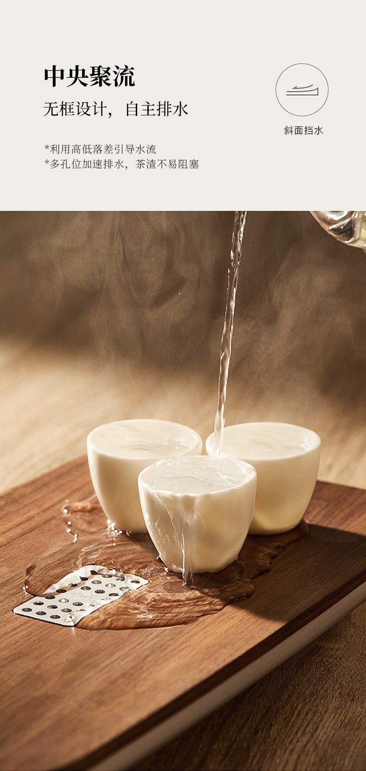 (超运·禾贸)鸣盏黑胡桃木小茶盘MZ5002 移动小茶盘家用储蓄水干泡茶台办公室带排水式铝合金托盘功夫茶具 (40×22×3.8厘米)