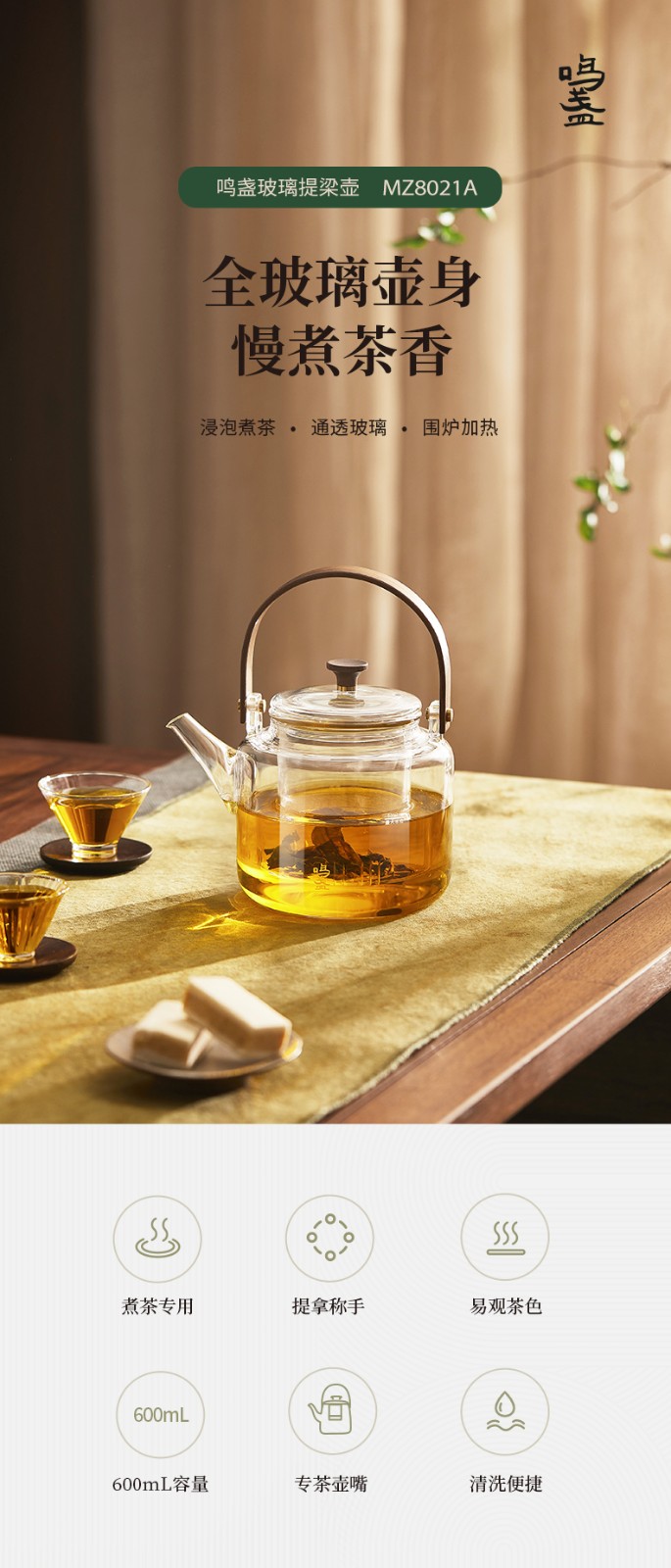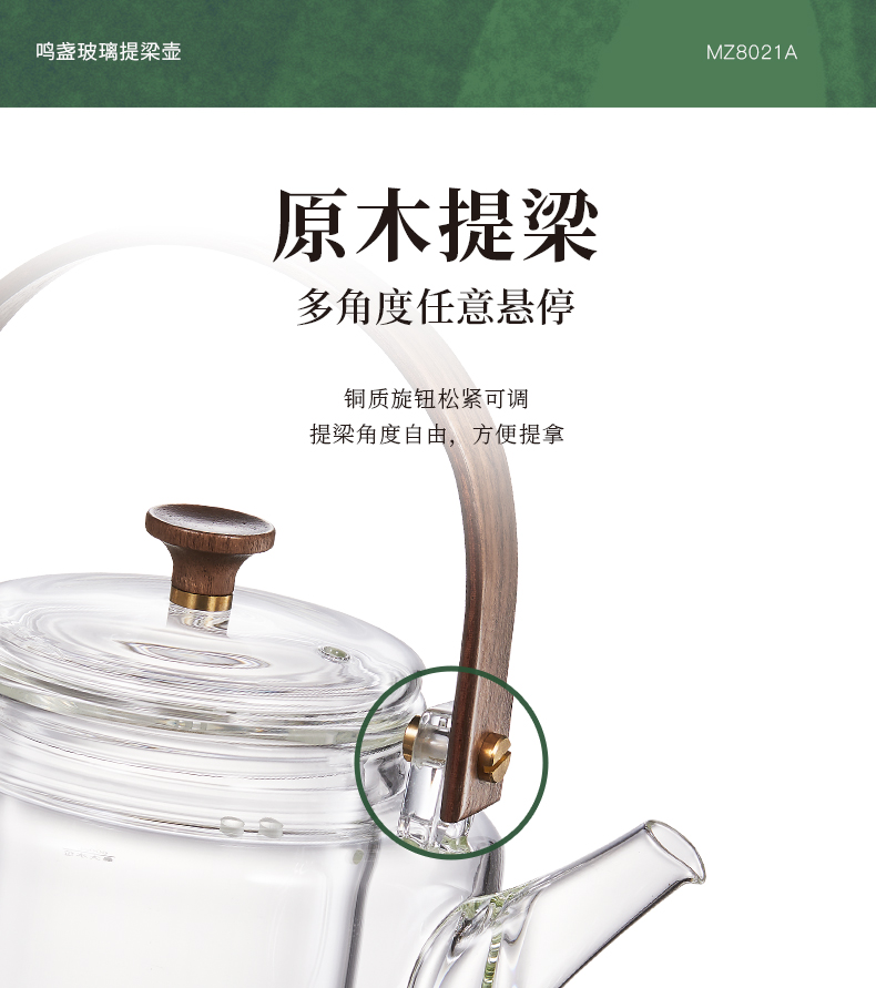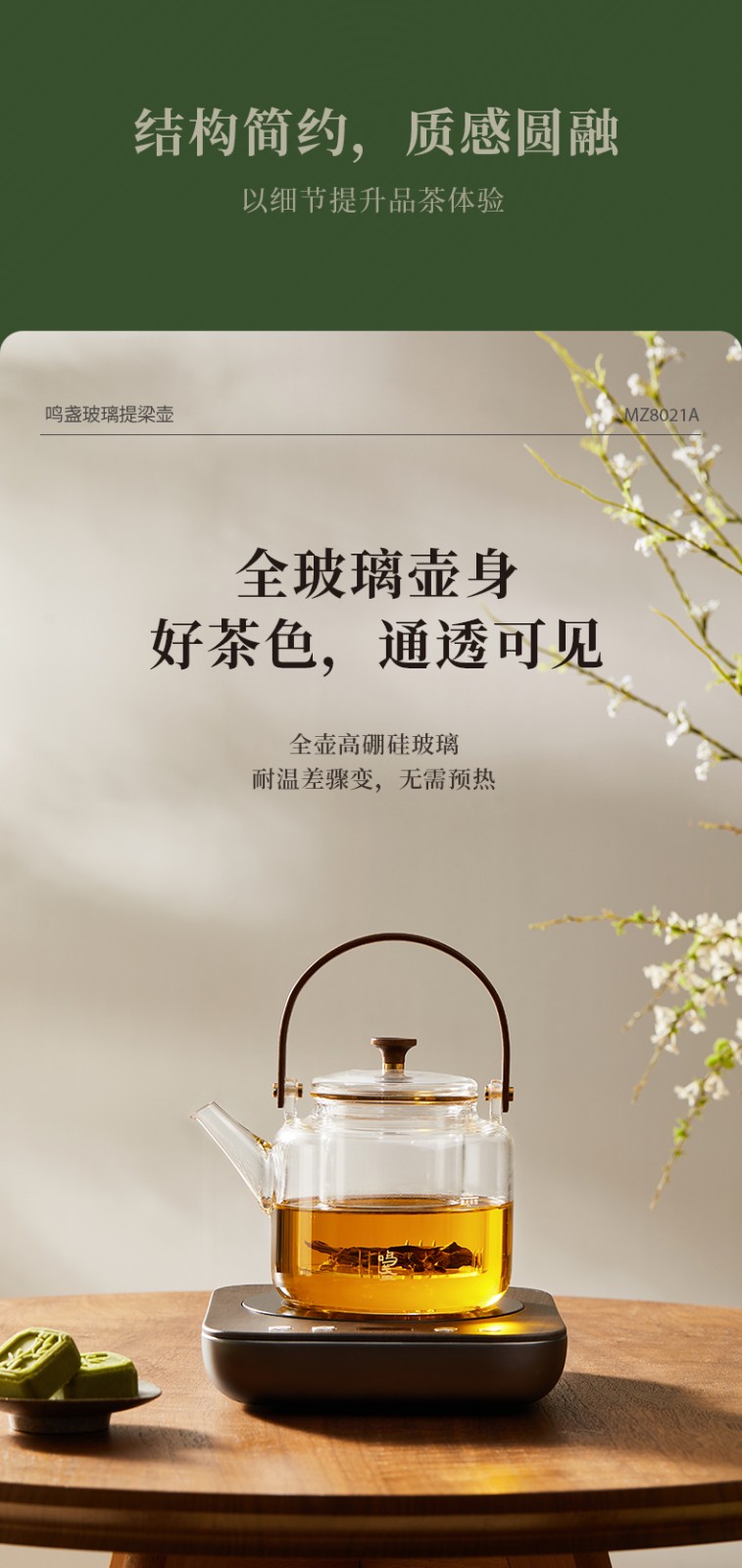 (超运·禾贸)鸣盏玻璃提梁壶 MZ8021A 煮茶玻璃烧水壶耐高温可加热煮茶提梁壶泡茶具煮茶器600ml