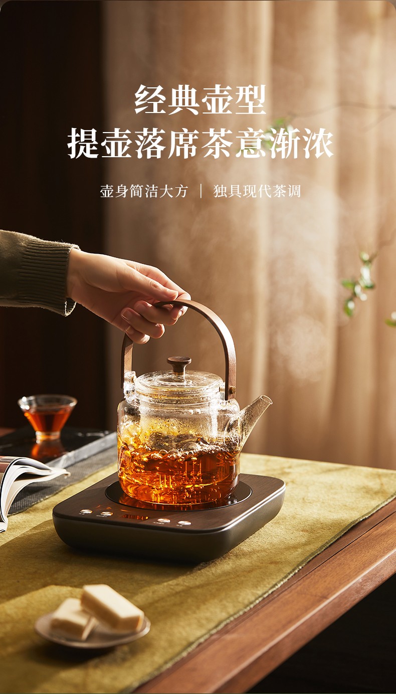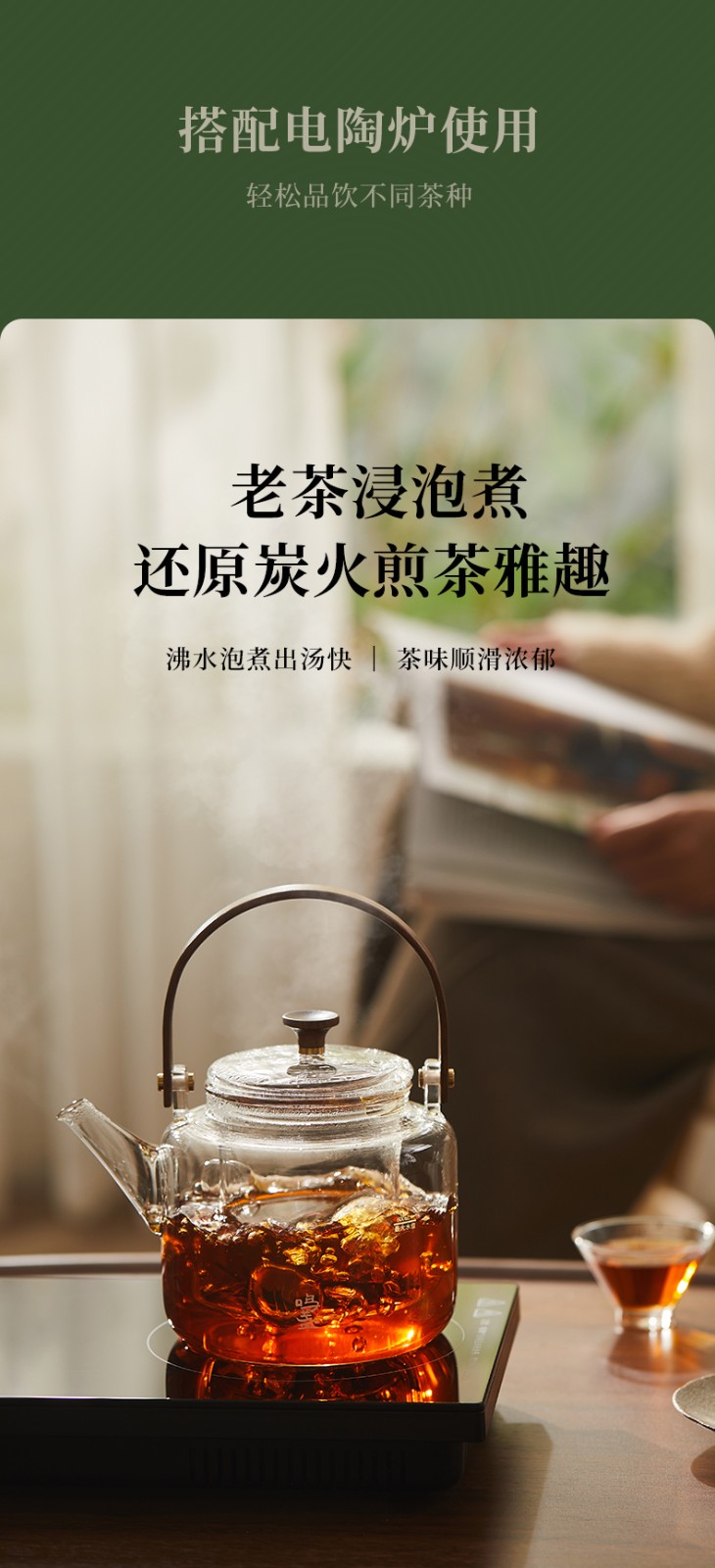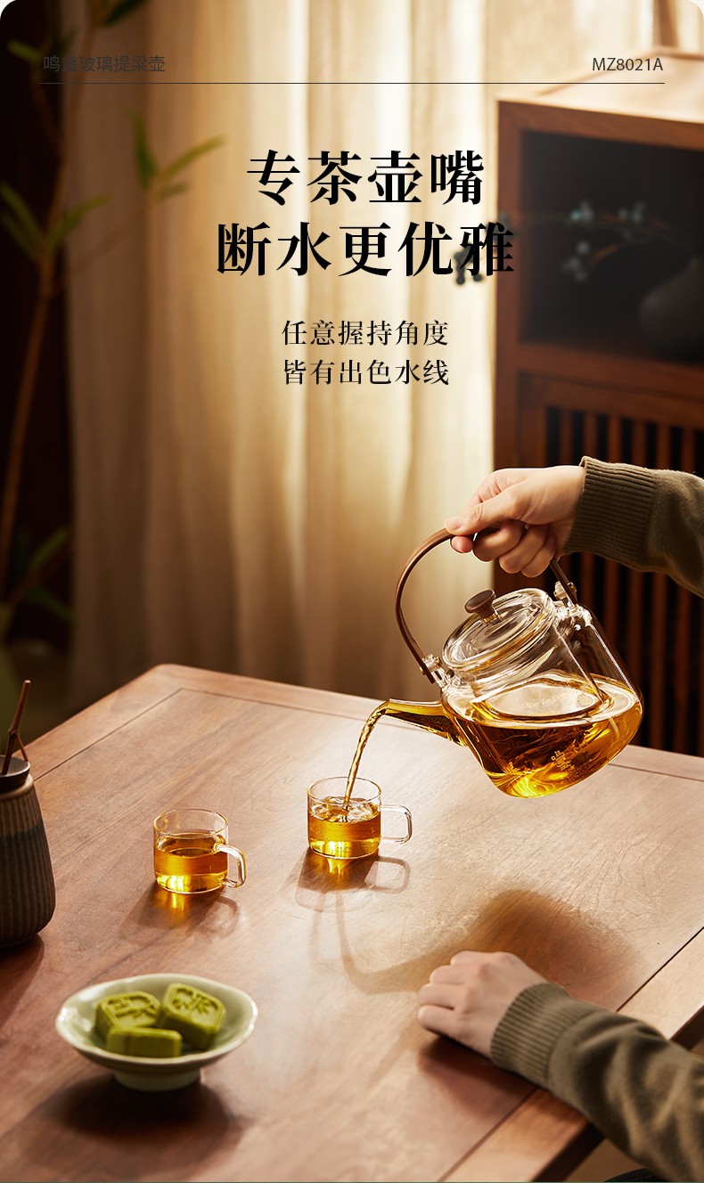 (超运·禾贸)鸣盏玻璃提梁壶 MZ8021A 煮茶玻璃烧水壶耐高温可加热煮茶提梁壶泡茶具煮茶器600ml
