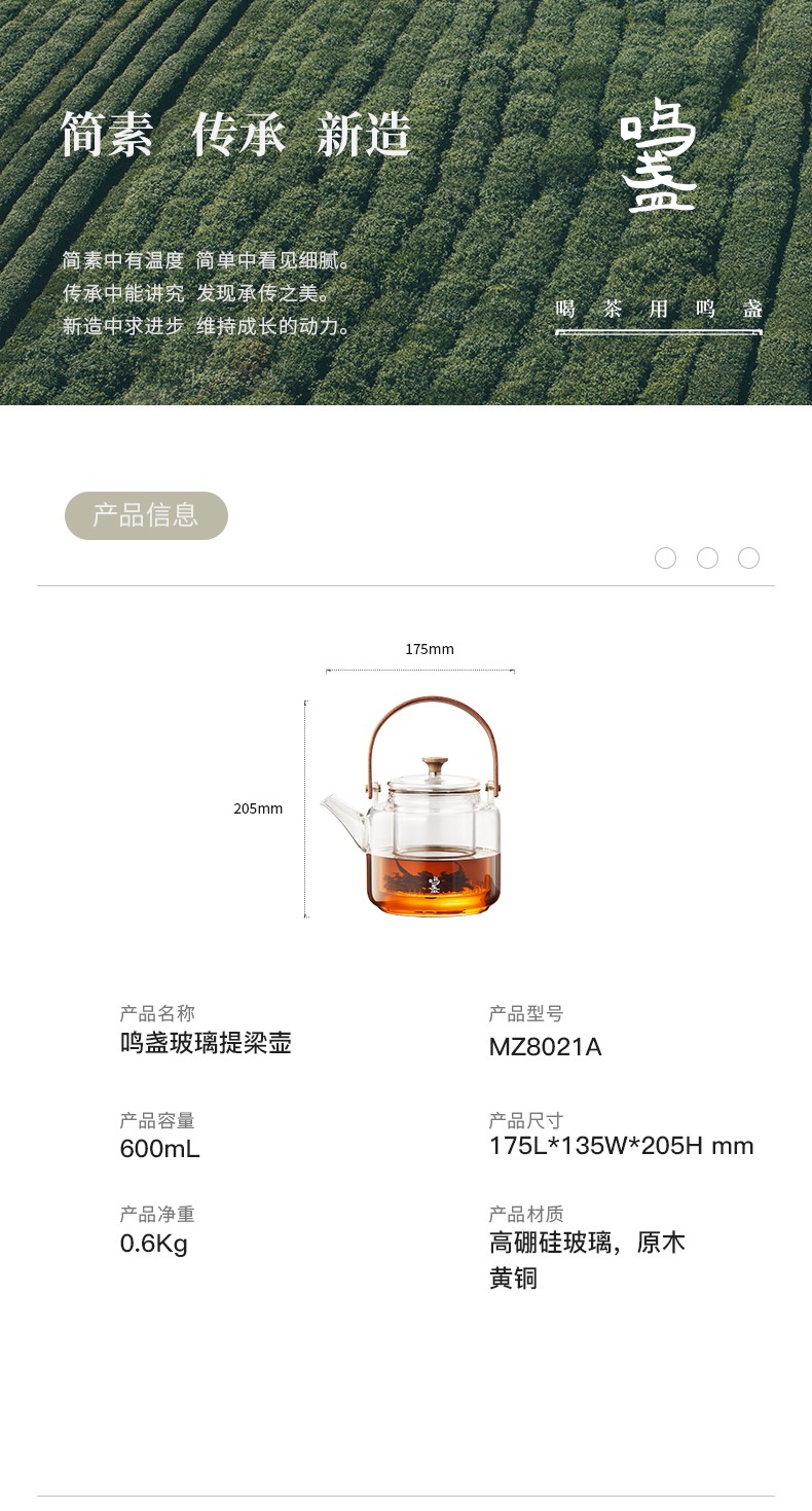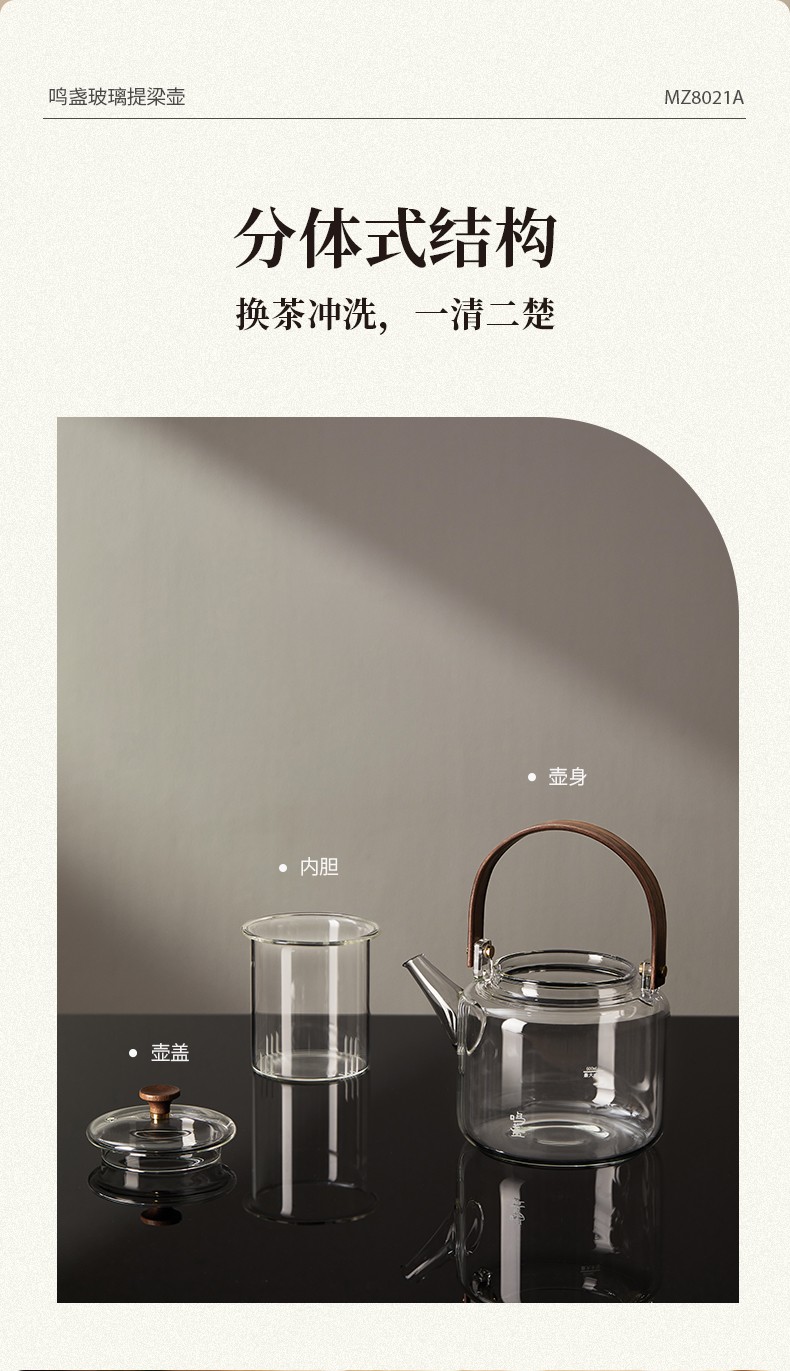 商品名称:(超运·禾贸)鸣盏玻璃提梁壶 MZ8021A 煮茶玻璃烧水壶耐高温可加热煮茶提梁壶泡茶具煮茶器600ml