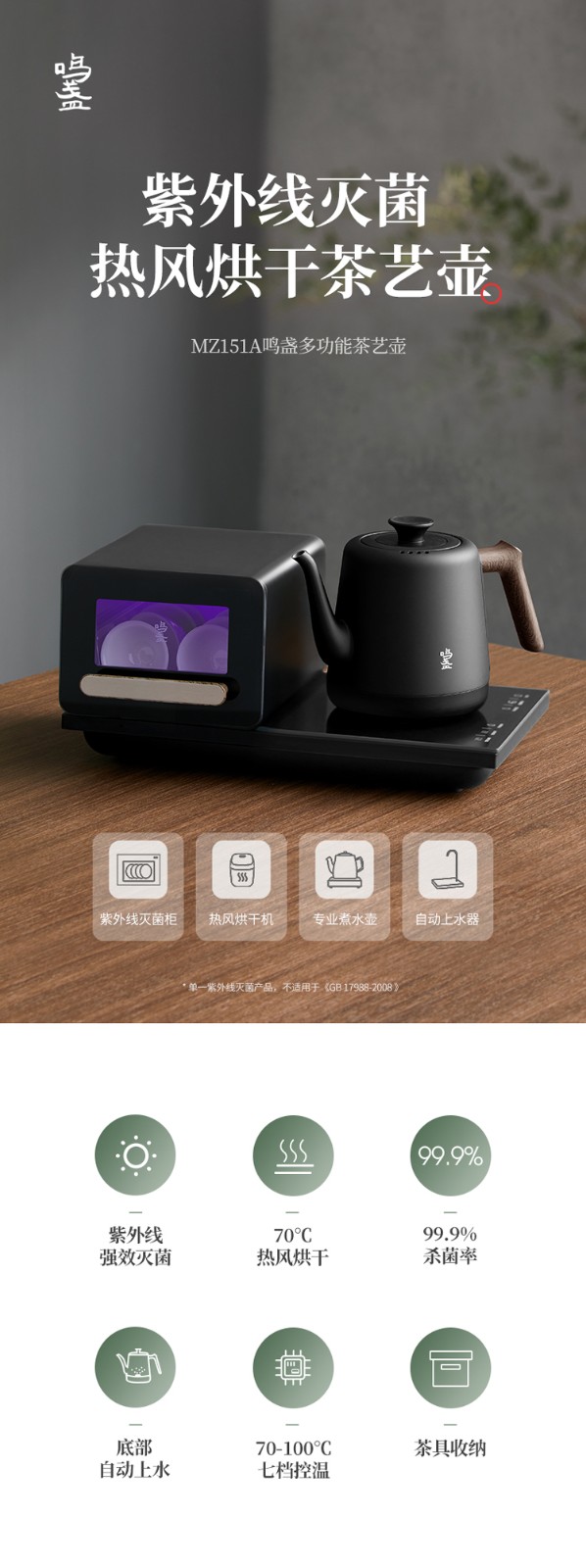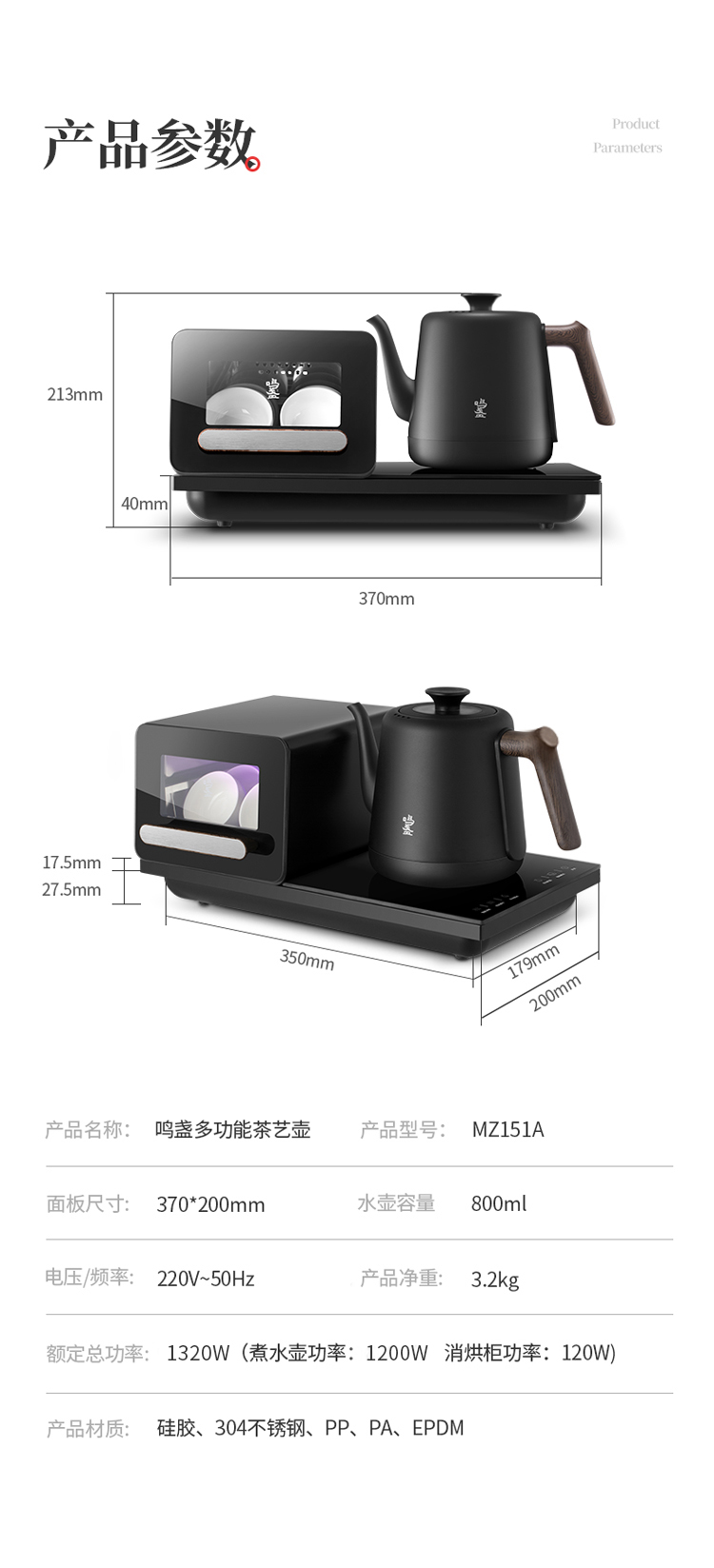 商品名称:(超运·禾贸)鸣盏多功能上水壶MZ151A 全自动底部上水壶电热水壶茶艺烧水壶电茶炉全套煮茶器紫外灭菌烘干恒温电水壶 可嵌入200*370mm 0.8L