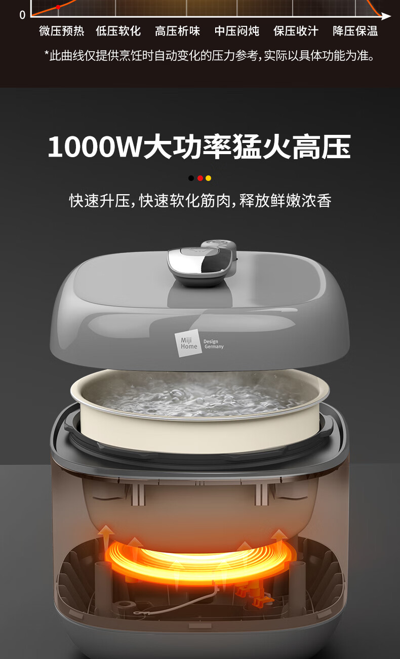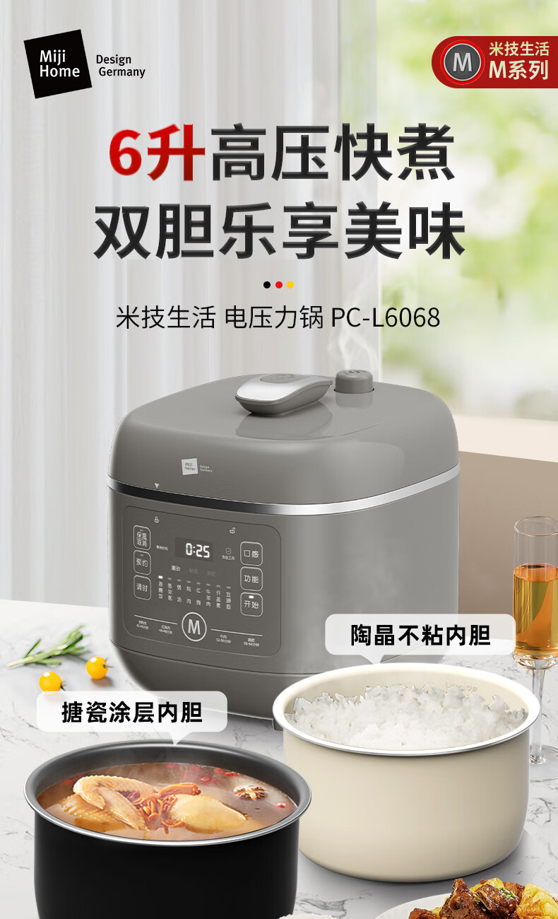 (世星阳光)米技 电压力锅 PC-L6068 4L 24小时智能预约
