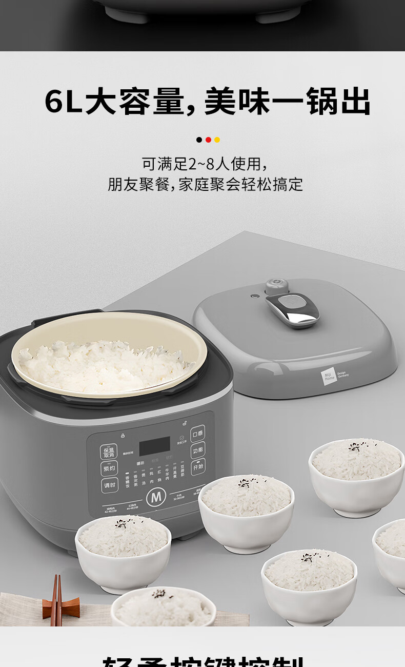 商品名称:(世星阳光)米技 电压力锅 PC-L6068 4L 24小时智能预约