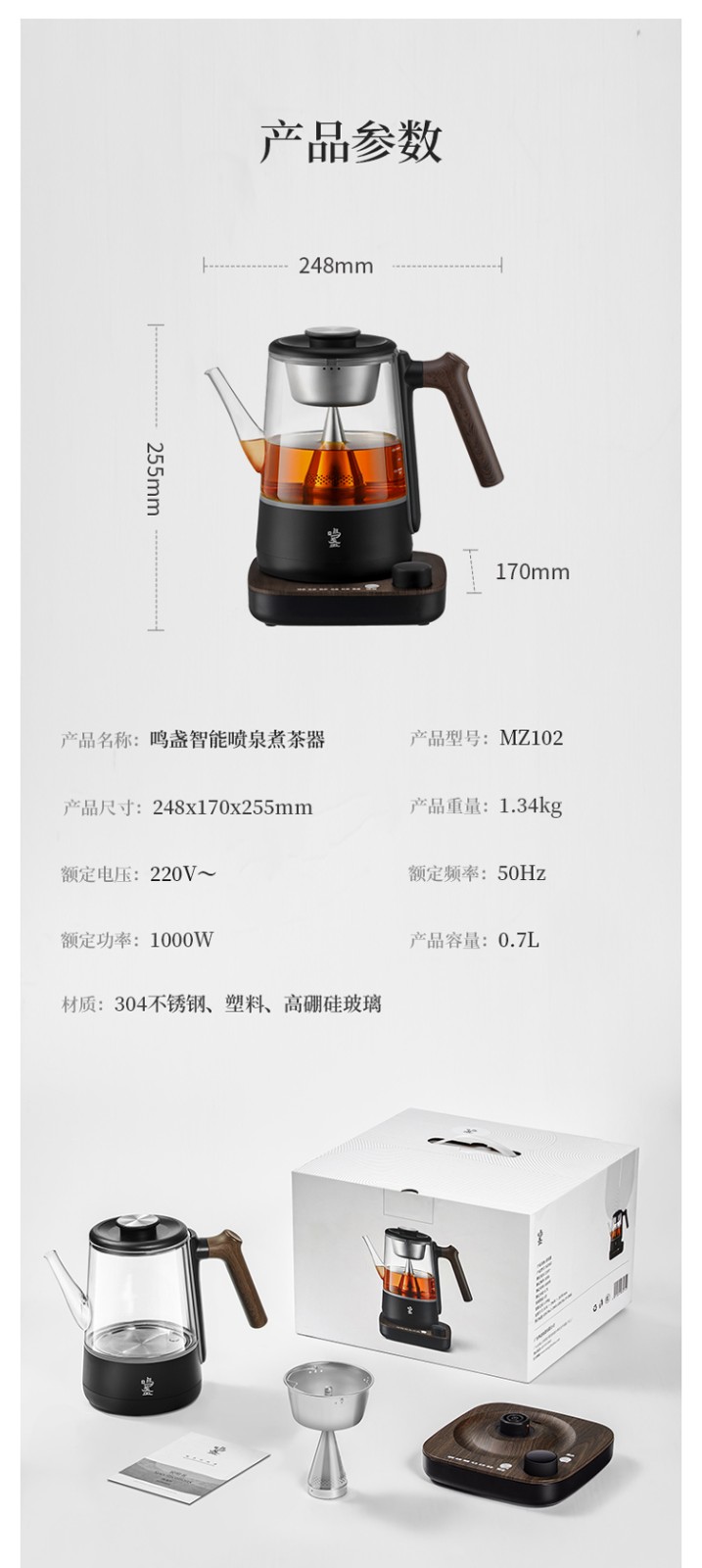 商品名称:(超运·禾贸)鸣盏煮茶器MZ102 智能喷泉煮茶器旋转喷淋蒸煮养生茶壶一键喷淋烧水可控温恒温保温电热水壶MZ102 智能喷泉煮茶器700ML