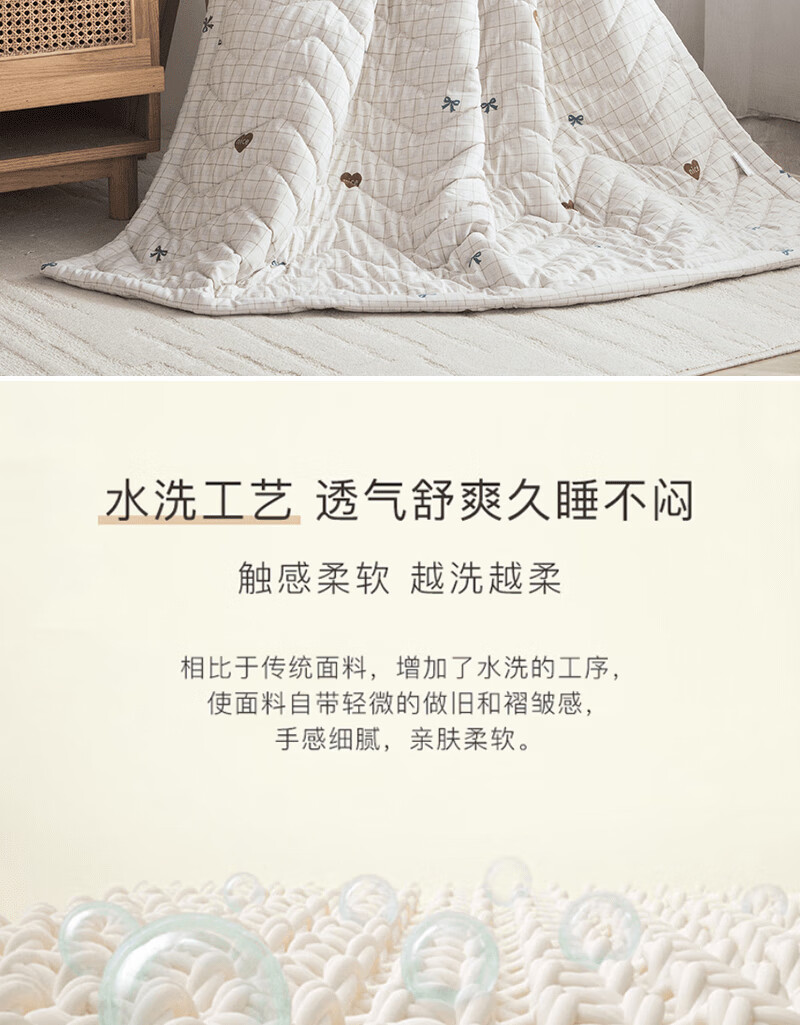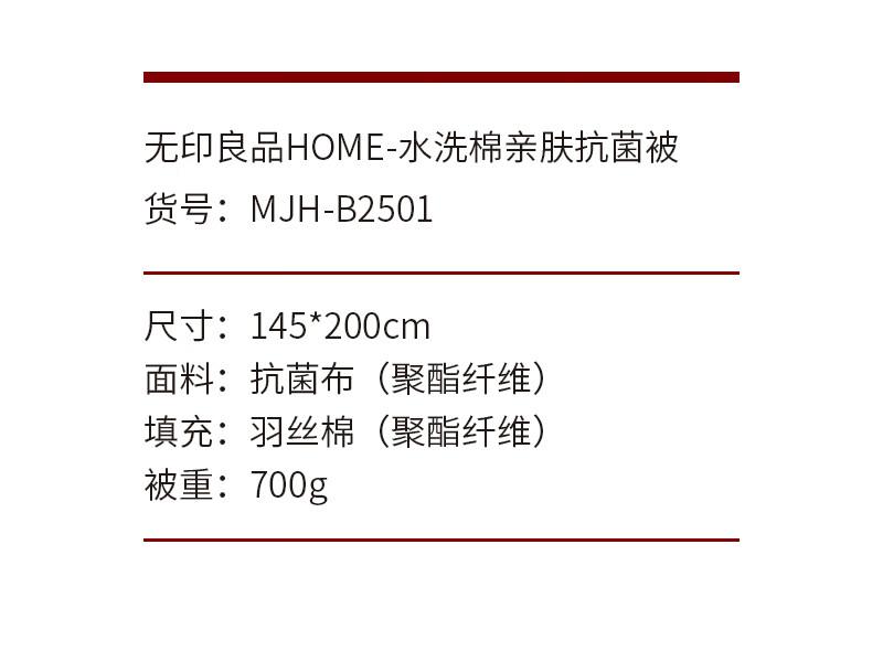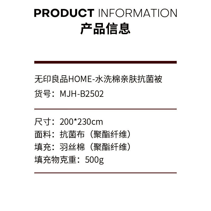 (巨邦佑)BJ+无印良品HOME水洗棉亲肤抗菌被 145*200cm/200*230cm 100%聚酯纤维面料填充 亲肤舒适水洗抗菌