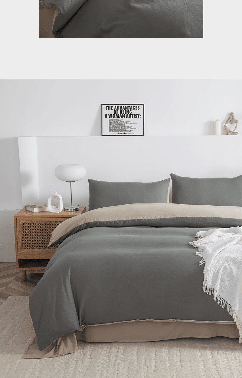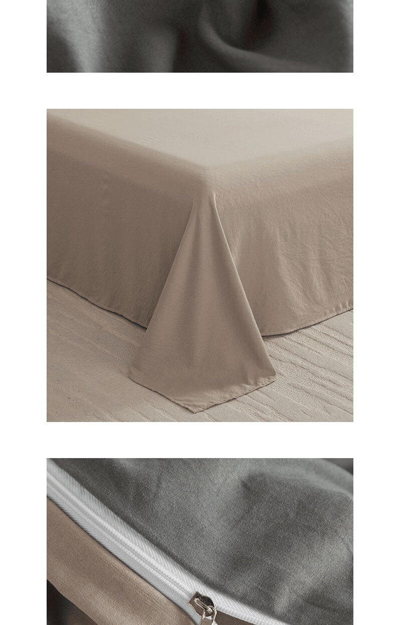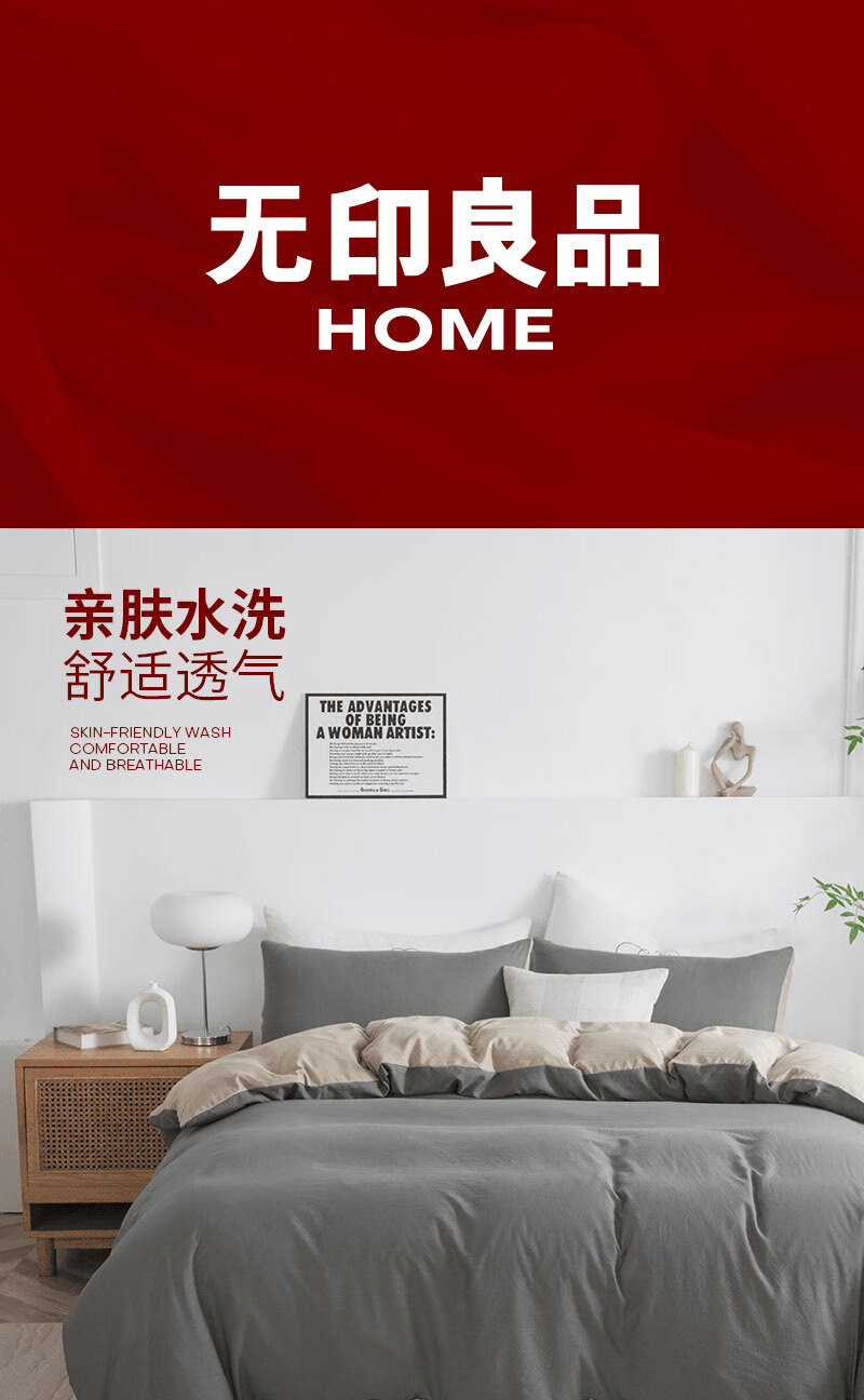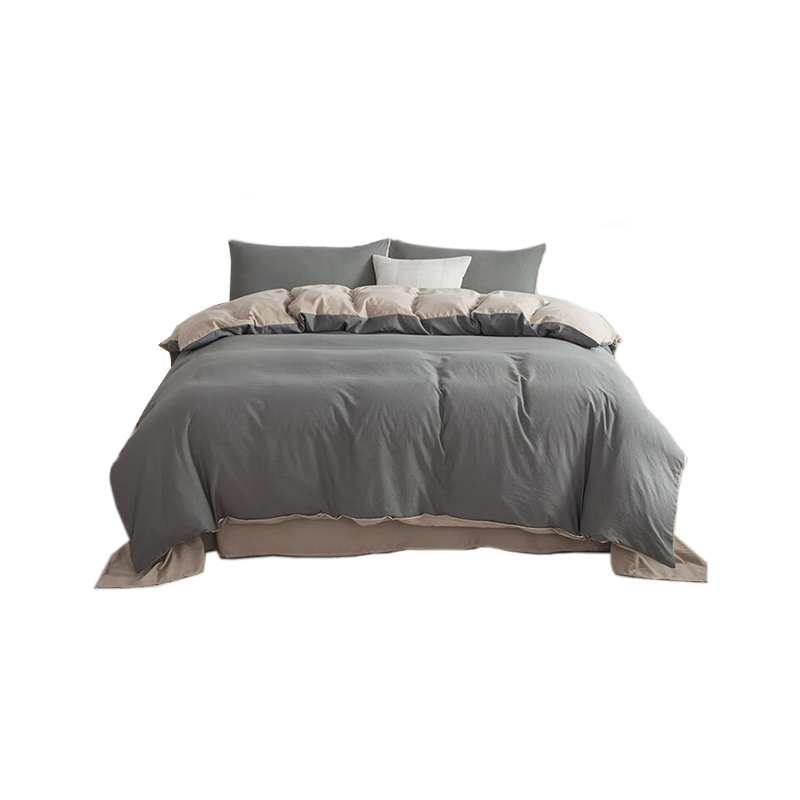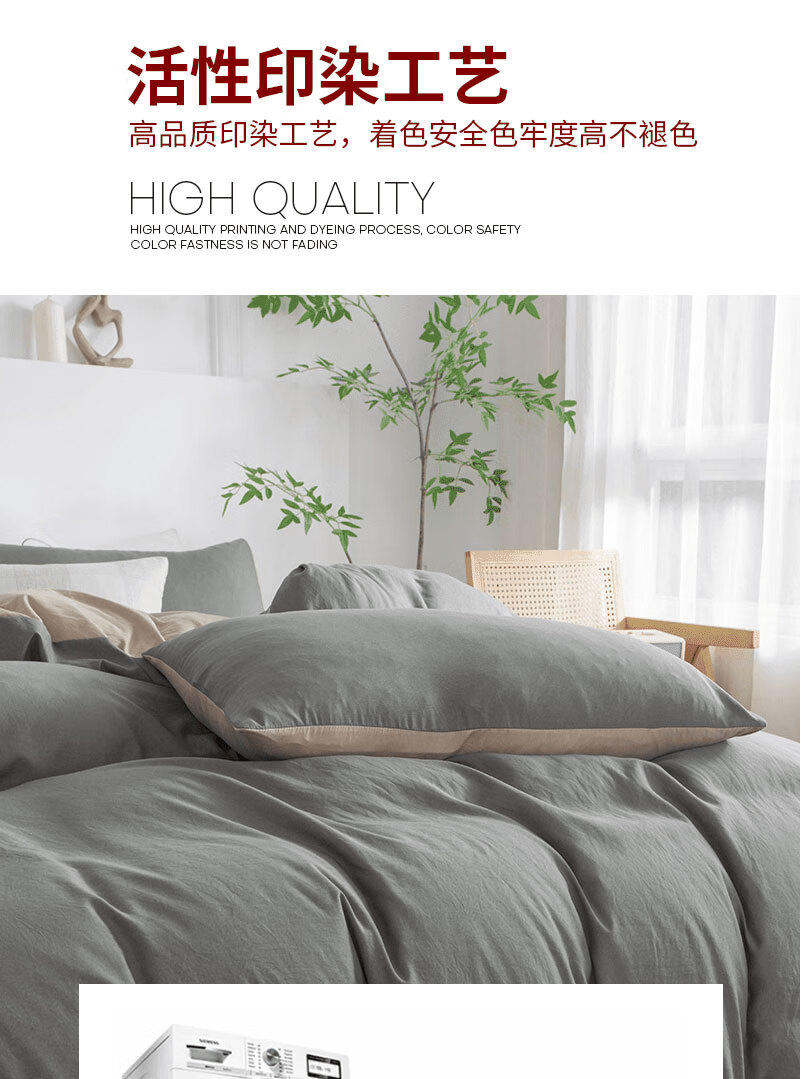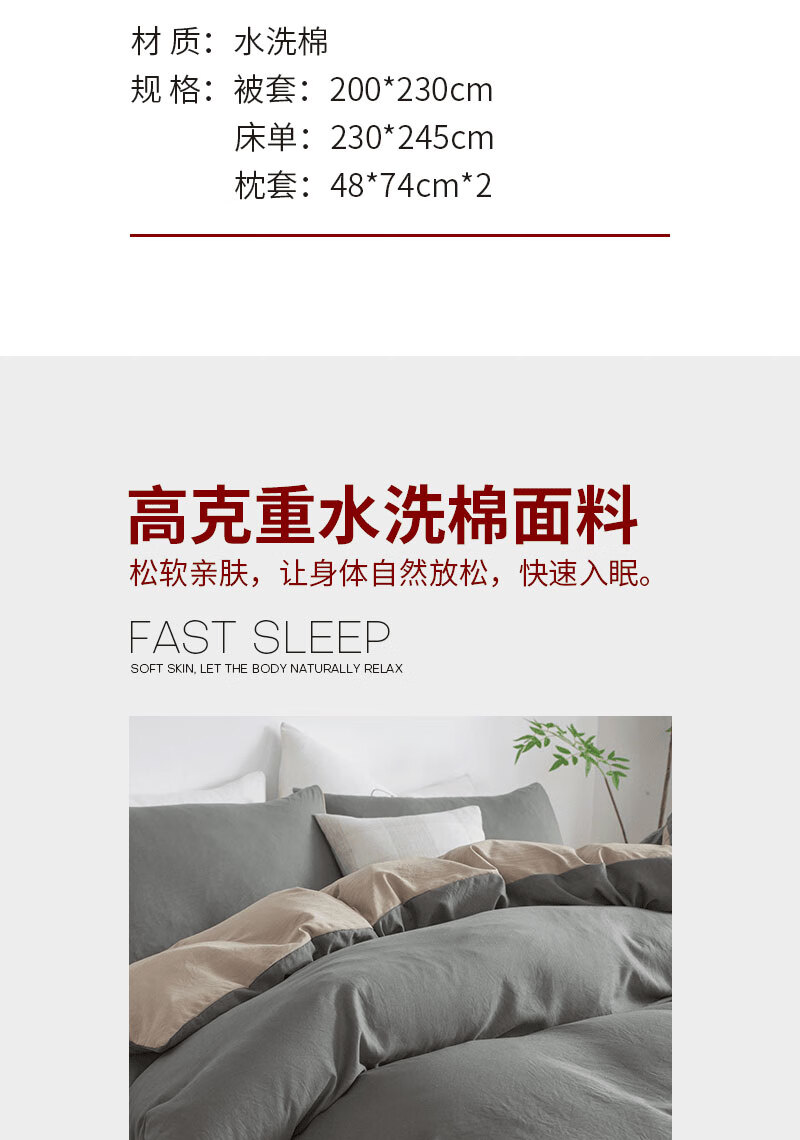 (巨邦佑)BJ+无印良品HOME水洗棉四件套-灰咖 材质:水洗棉(80%以上含棉量) 亲肤水洗舒适透气