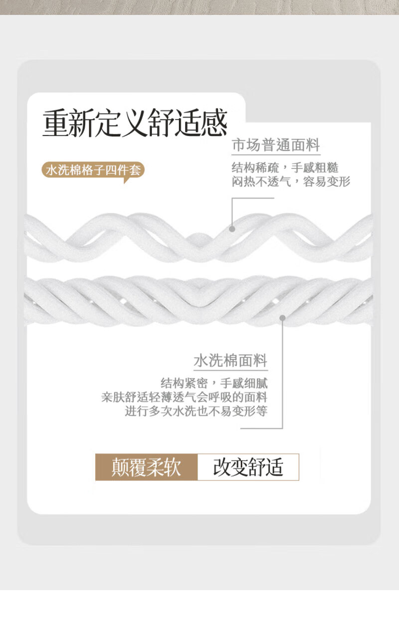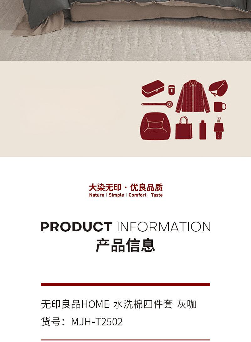 商品名称:(巨邦佑)BJ+无印良品HOME水洗棉四件套-灰咖 材质:水洗棉(80%以上含棉量) 亲肤水洗舒适透气