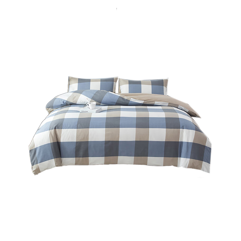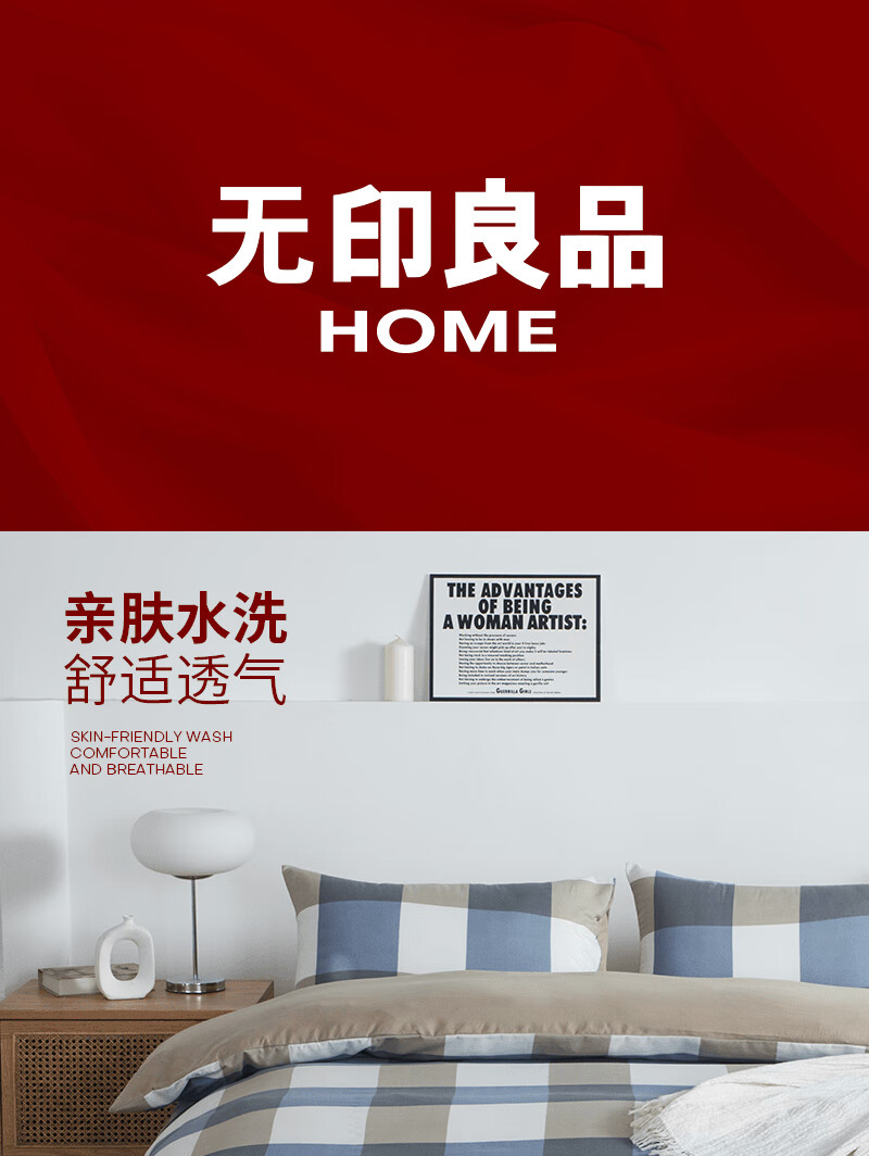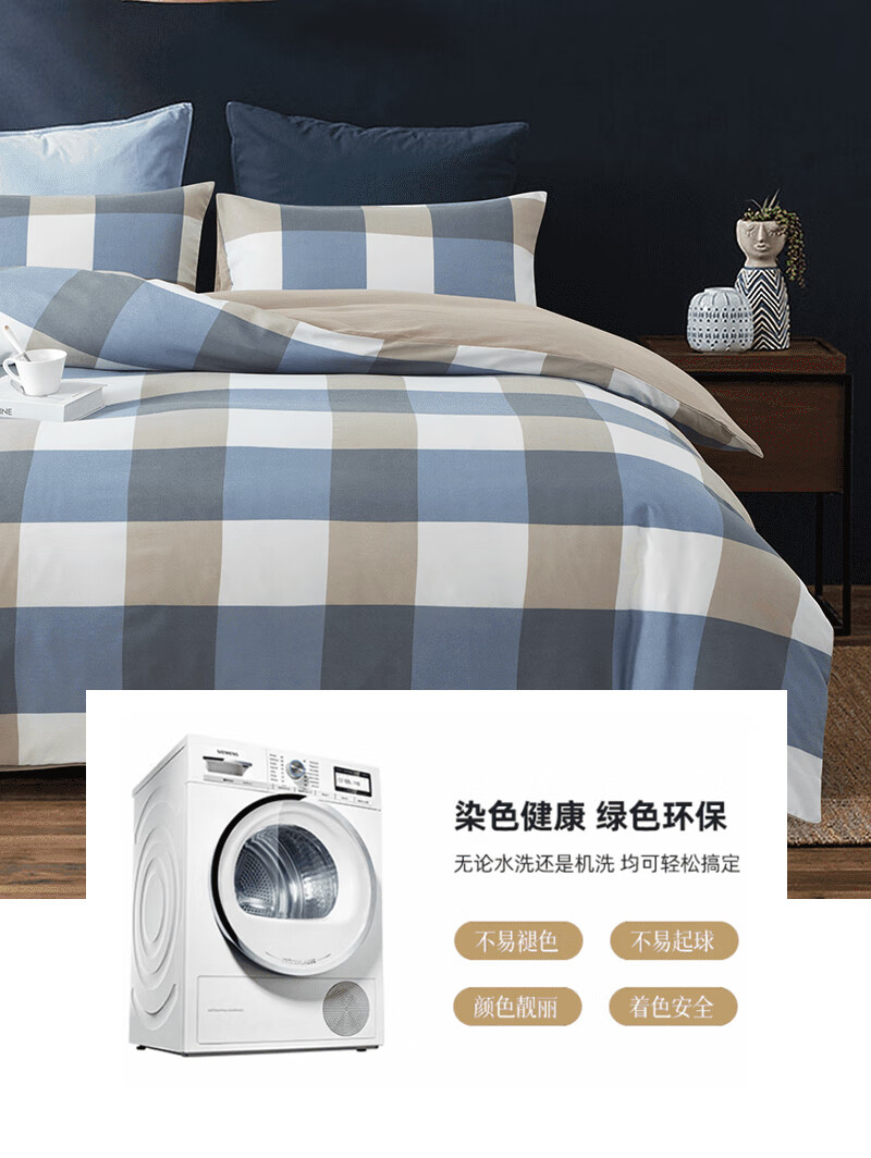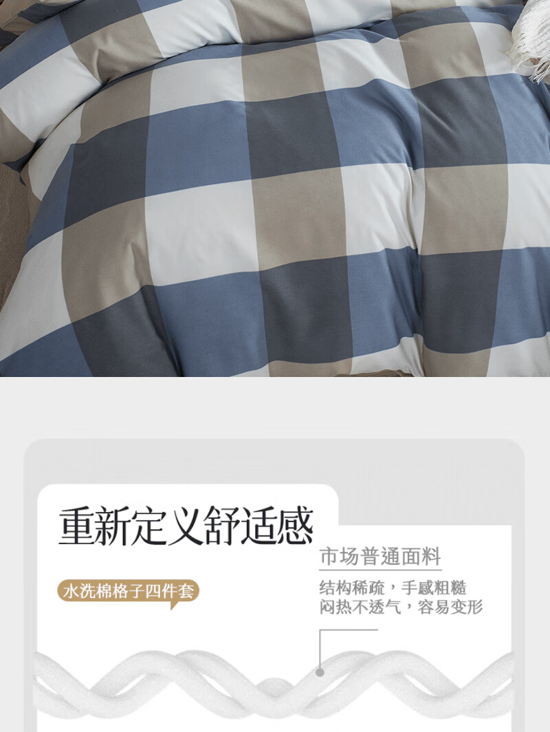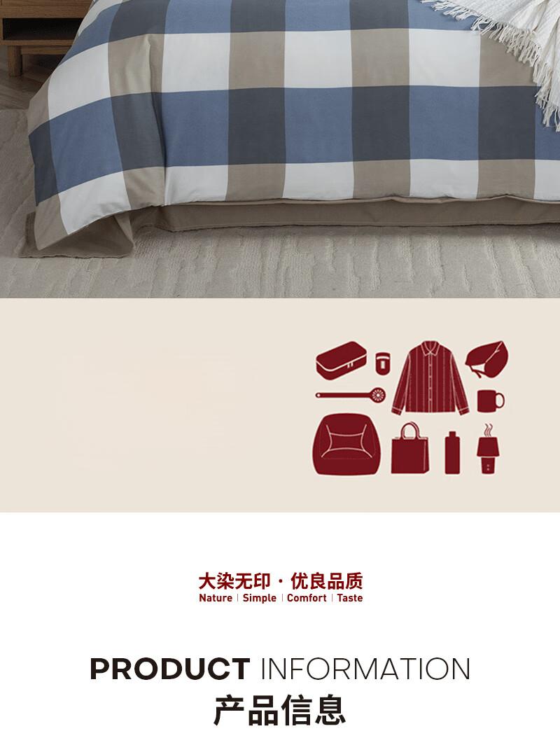 (巨邦佑)BJ+无印良品HOME水洗棉四件套-蓝格 材质:水洗提花布(80%以上含棉量) 松软亲肤活性印染工艺