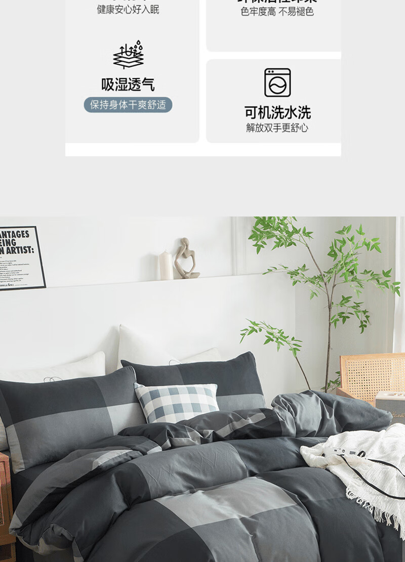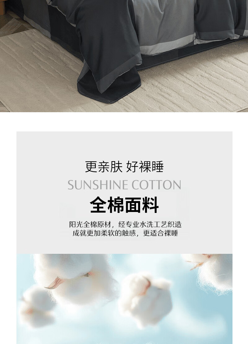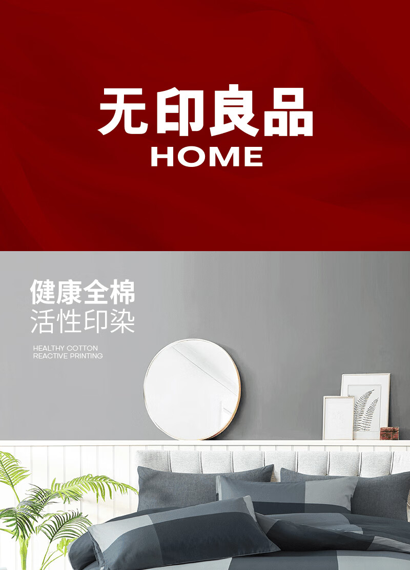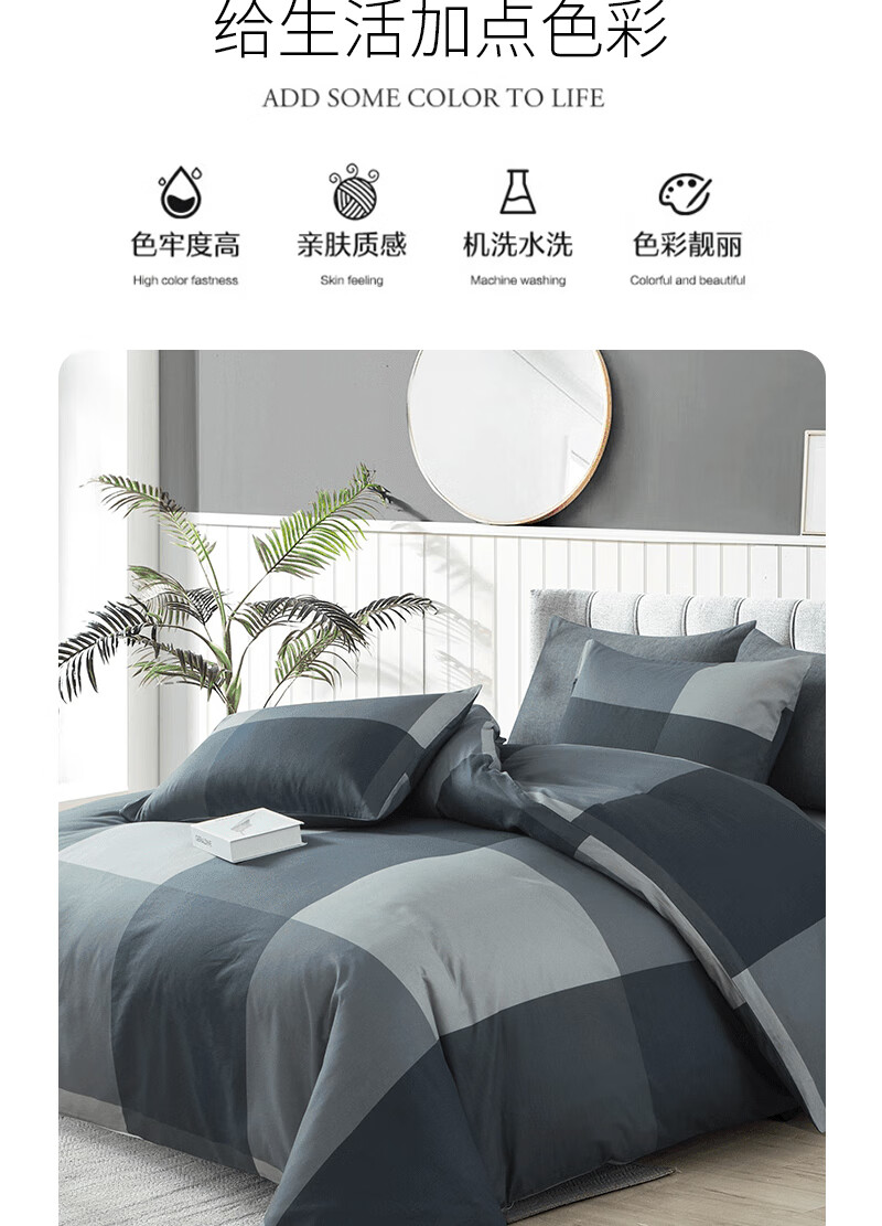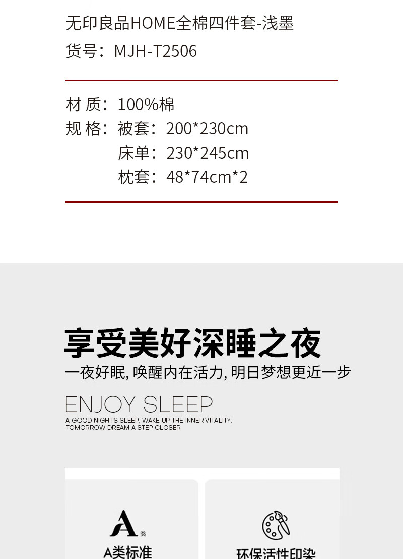 商品名称:(巨邦佑)BJ+无印良品HOME全棉四件套-浅墨 100%棉材质 简约格调优良印染
