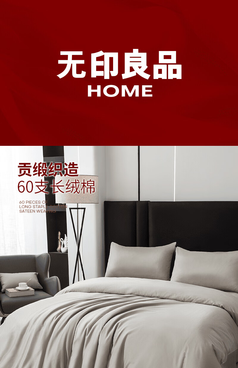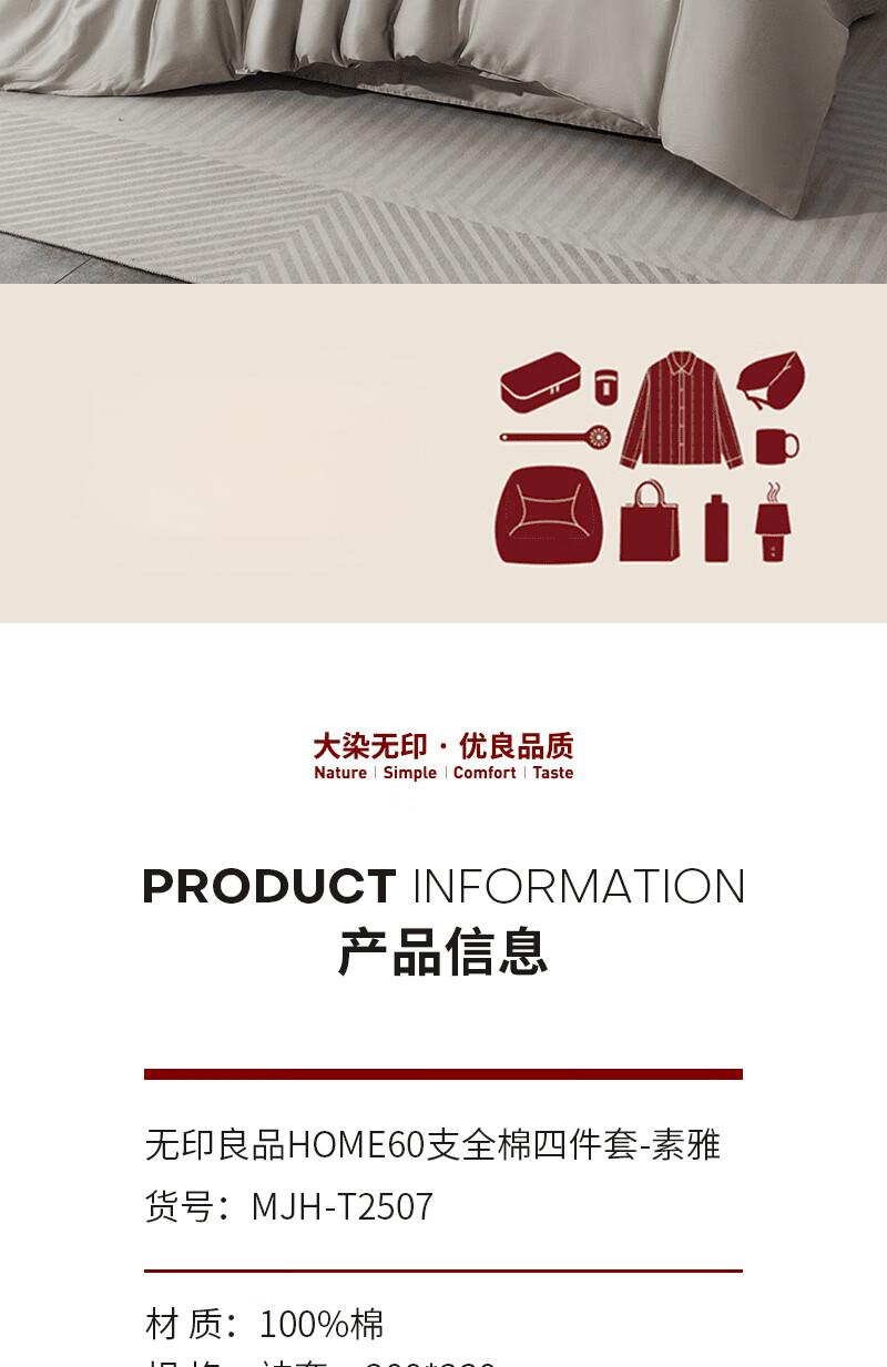 (巨邦佑)BJ+无印良品HOME60支全棉四件套-素雅 100%棉材质 简约格调优良印染