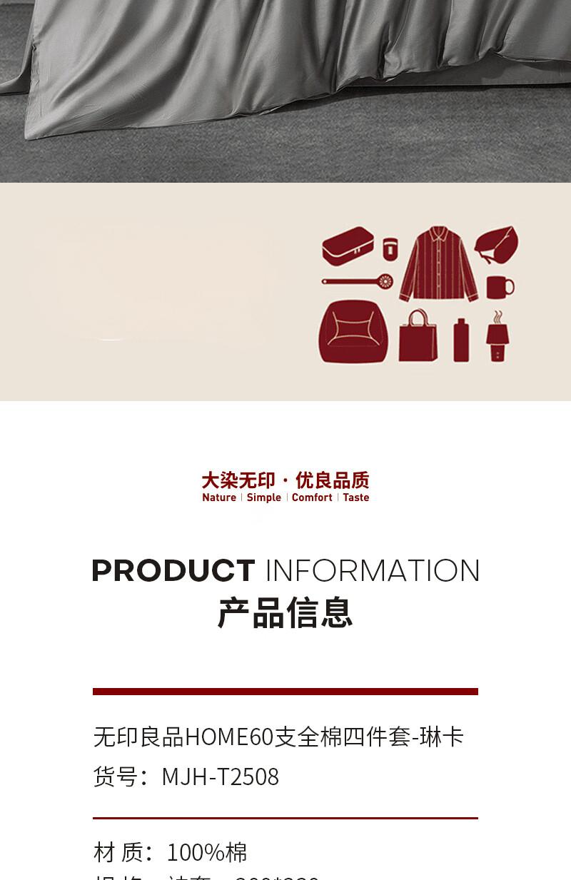 (巨邦佑)BJ+无印良品HOME60支全棉四件套-琳卡 100%棉材质 简约格调优良印染