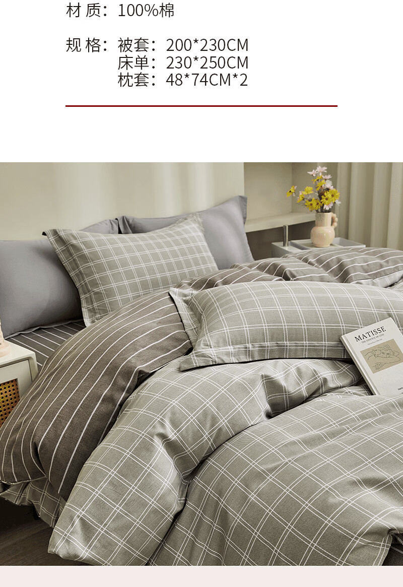 商品名称:(巨邦佑)BJ+无印良品精品全棉四件套-格调 100%棉材质 活性印染亲肤贴身