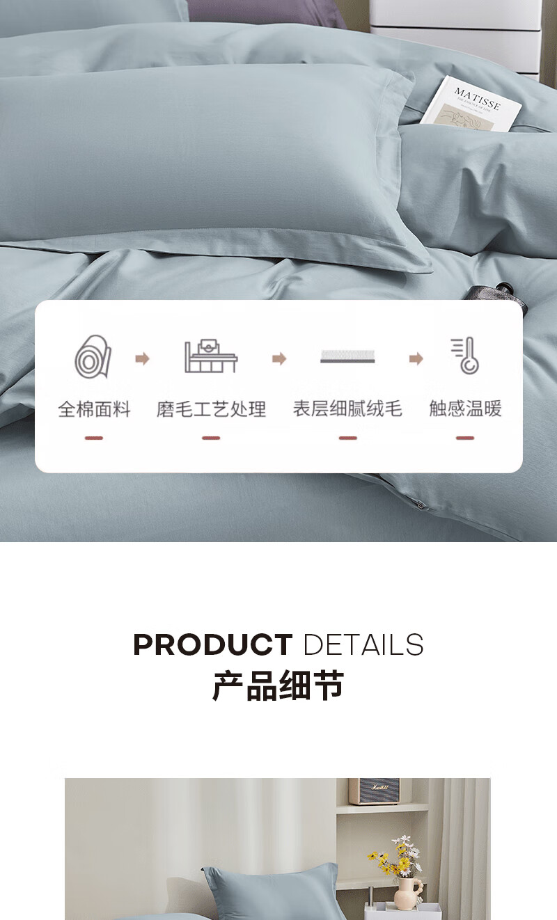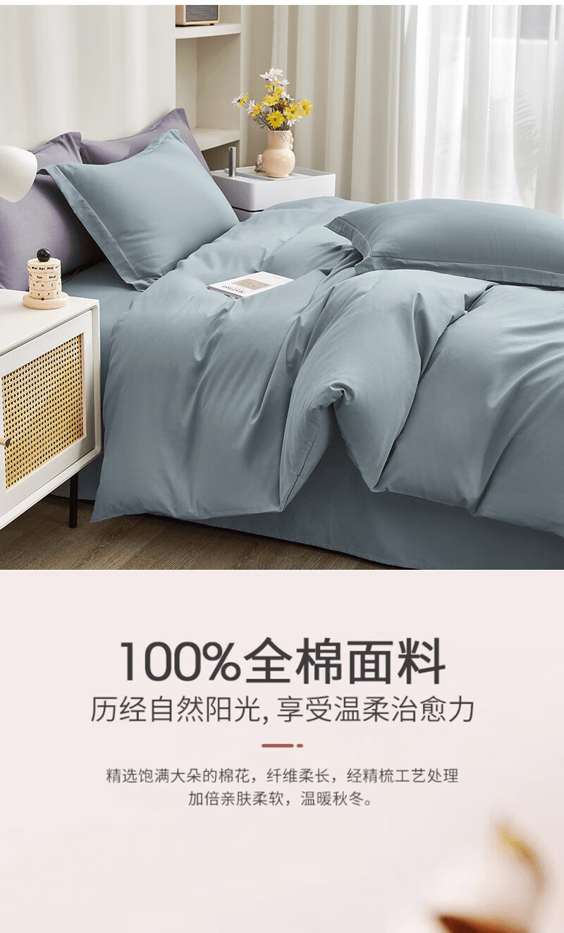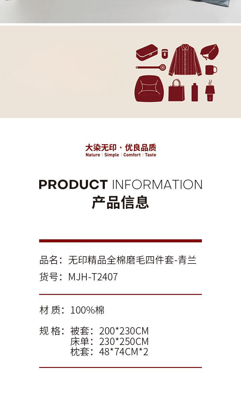 商品名称:(巨邦佑)BJ+无印良品全棉磨毛四件套-青兰 100%棉材质 活性印染亲肤贴身