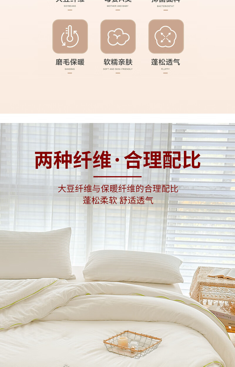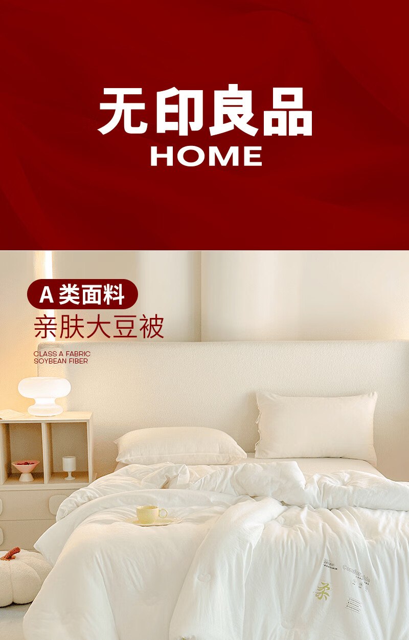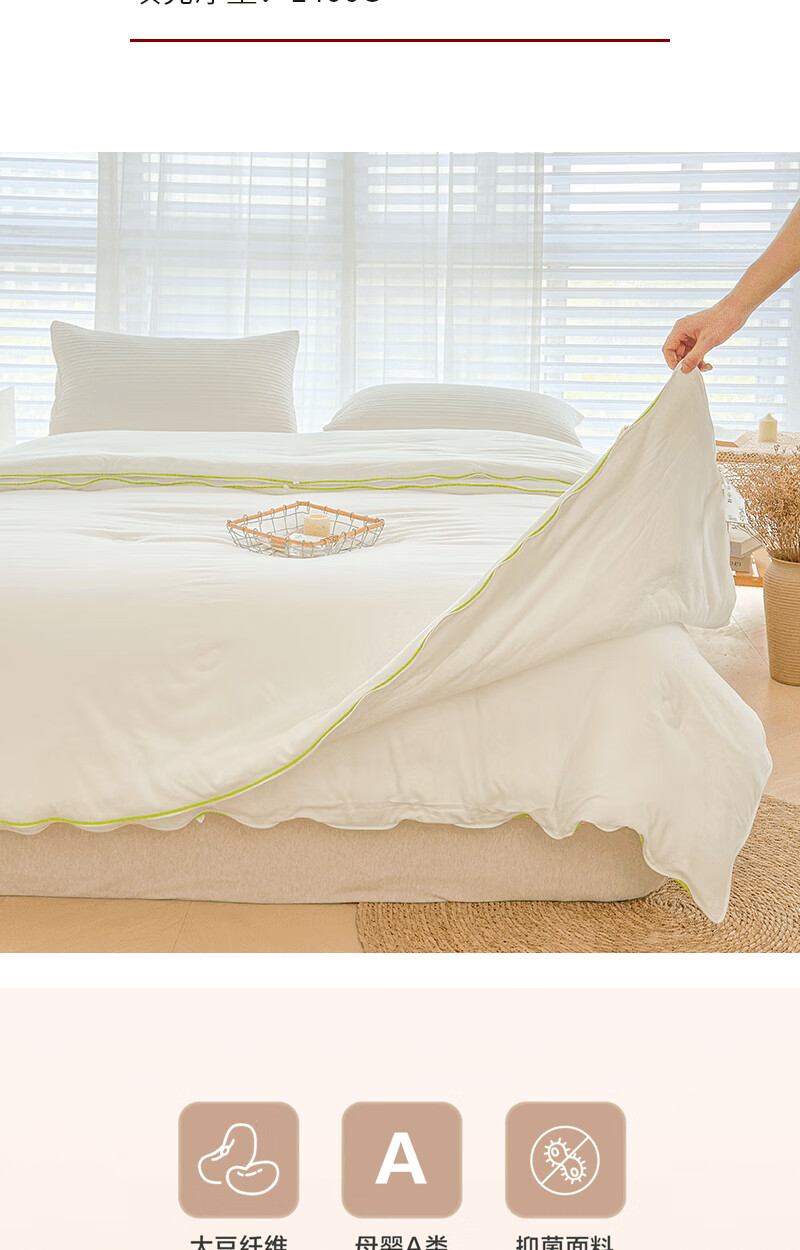 商品名称:(巨邦佑)BJ+无印良品亲肤大豆被 200*230cm 面料填充100%聚酯纤维 柔贝尔抑菌面料填充大豆保暖纤维母婴A级