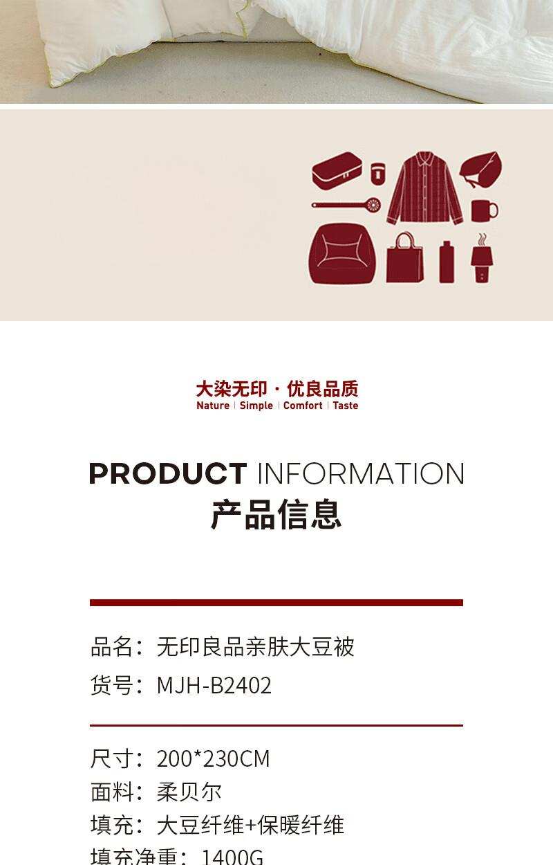(巨邦佑)BJ+无印良品亲肤大豆被 200*230cm 面料填充100%聚酯纤维 柔贝尔抑菌面料填充大豆保暖纤维母婴A级