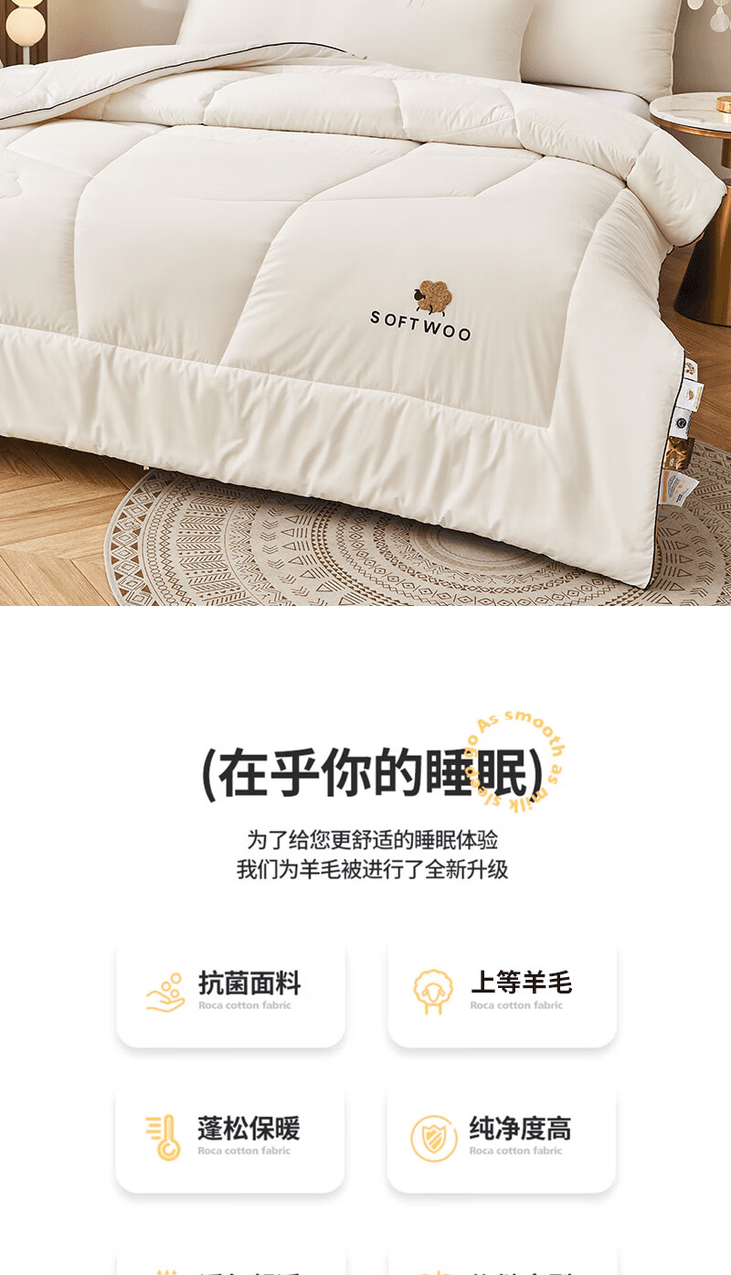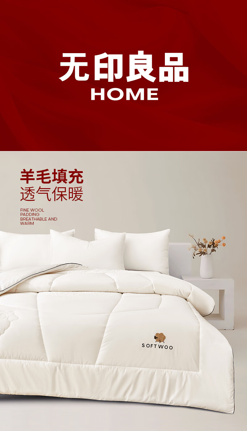 商品名称:(巨邦佑)BJ+无印良品新西兰羊毛被200*230cm 填充100%羊毛 高支高密防羽布面料 蓬松保暖