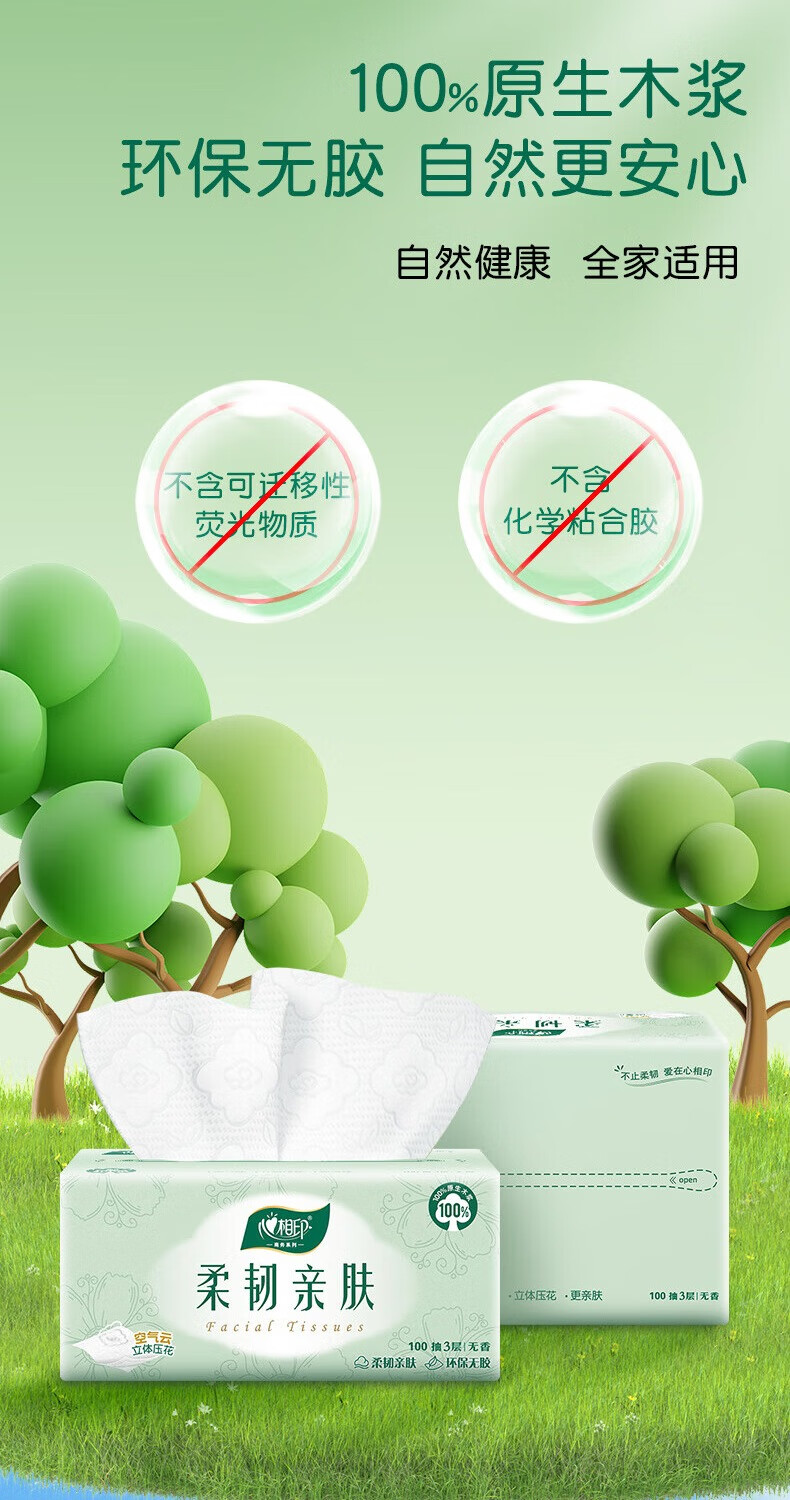 (世星阳光)心相印塑装抽纸(6包*1提2提)三层100抽 云感柔韧亲肤 6DT100(包装)