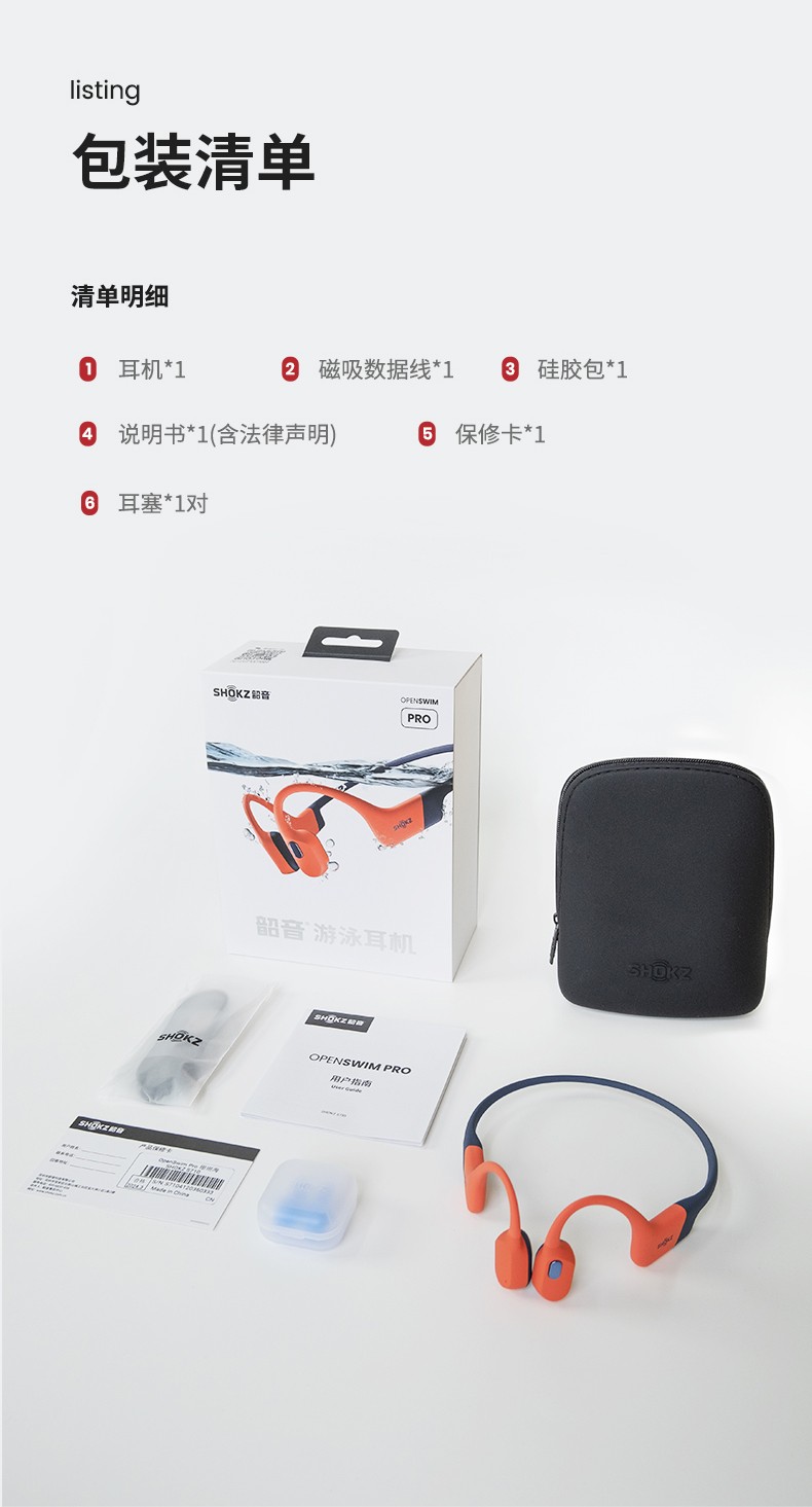商品名称:(超运·禾贸)韶音(SHOKZ)OpenSwim Pro 游泳耳机 珊瑚红 骨传导蓝牙耳机 开放式运动游泳跑步骑行不入耳