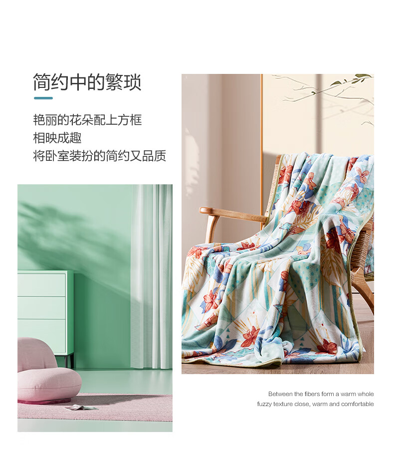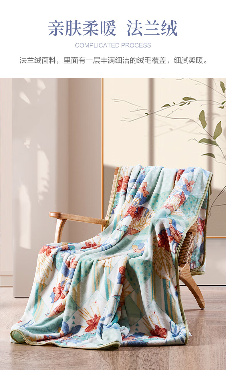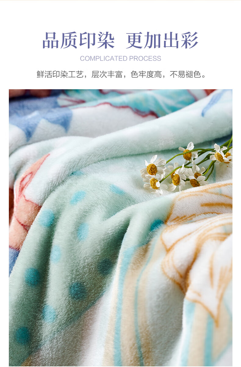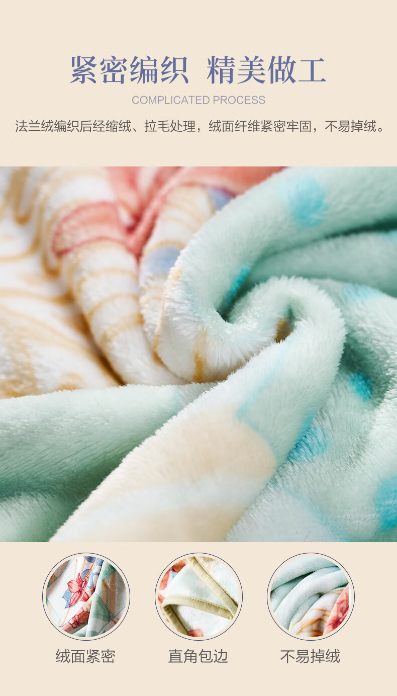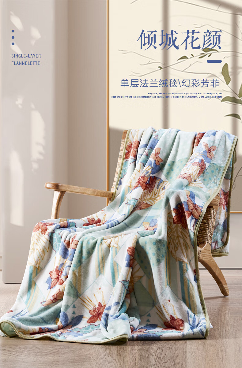 (巨邦佑)BJ+富安娜单层法兰绒毯幻彩芳菲180*200cm 面料:100%聚酯纤维 亲肤柔软法兰绒