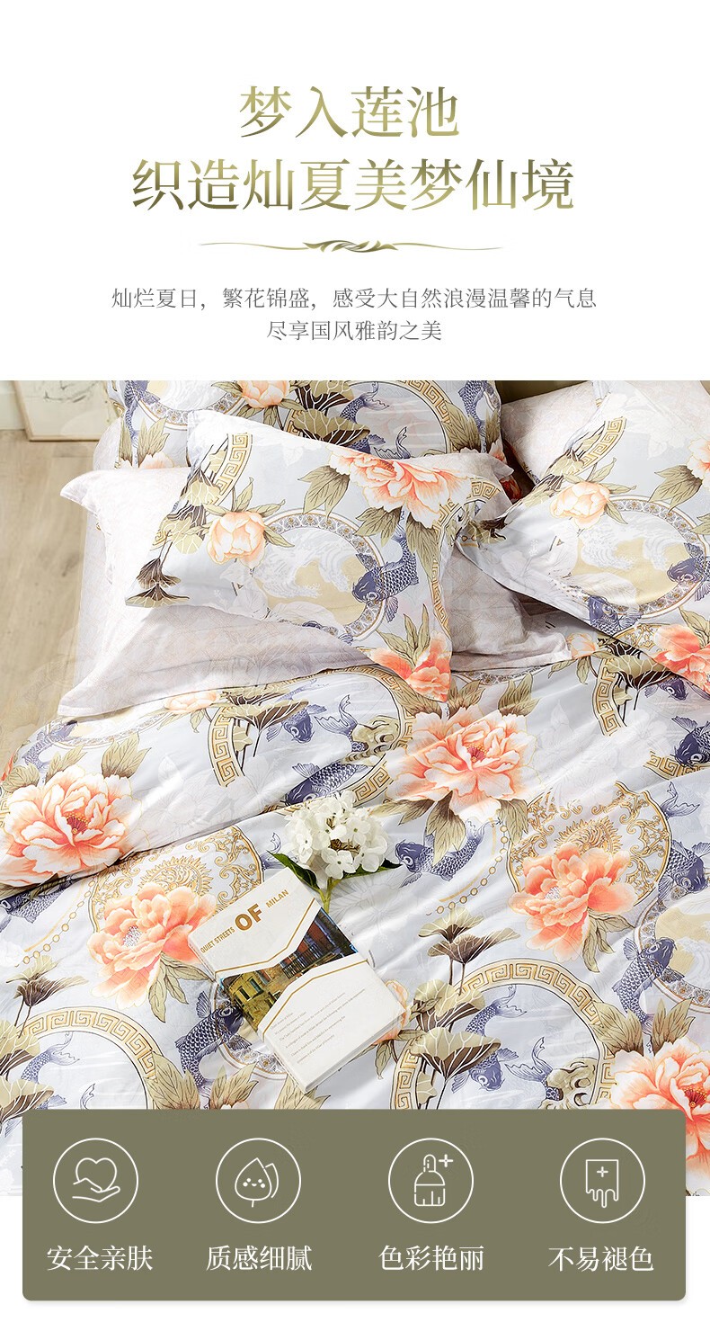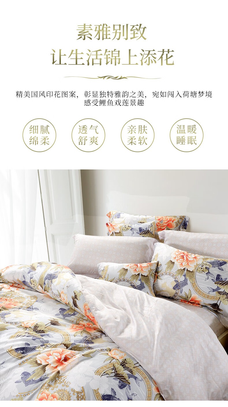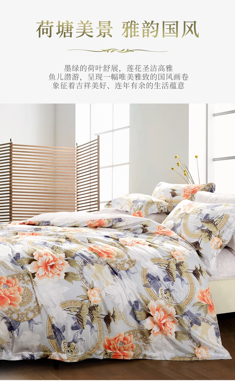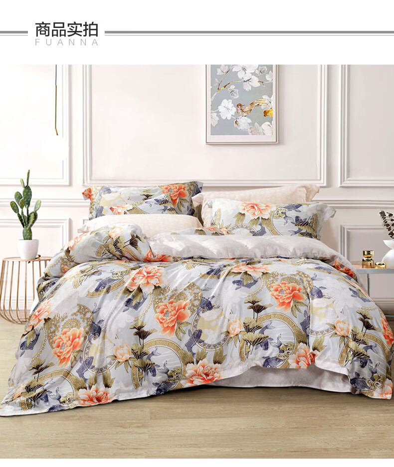 商品名称:(巨邦佑)BJ+富安娜纯棉四件套锦绣流莲 100%纯棉 透气舒爽温暖睡眠鲜活印染