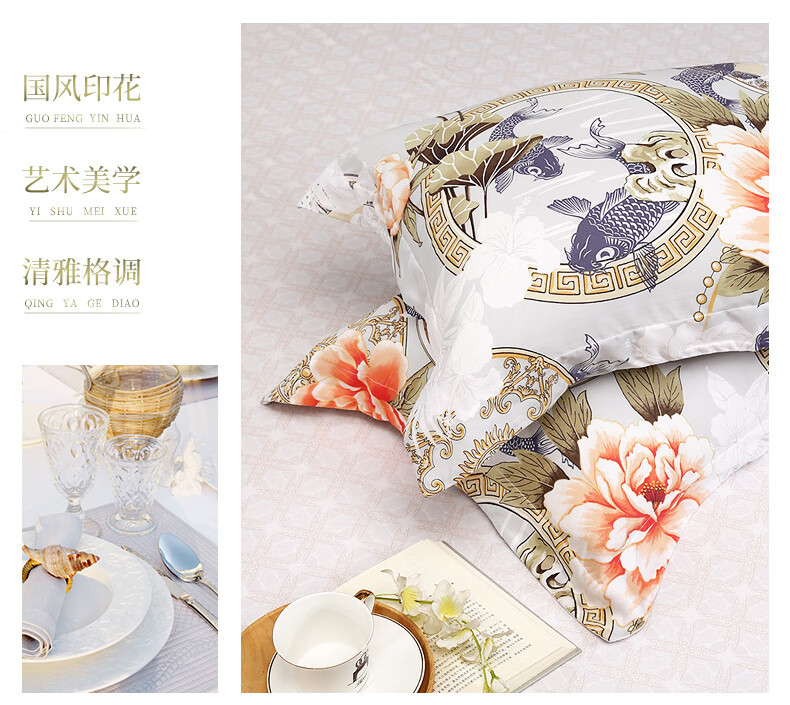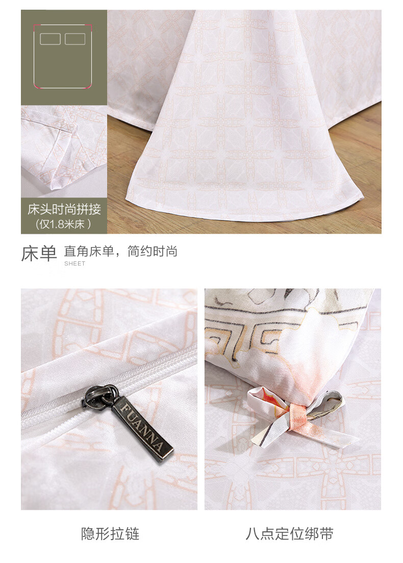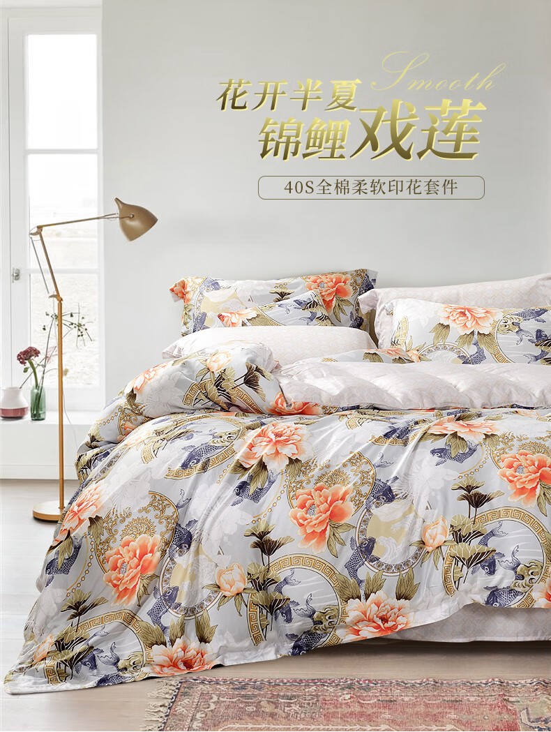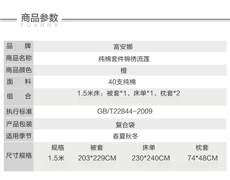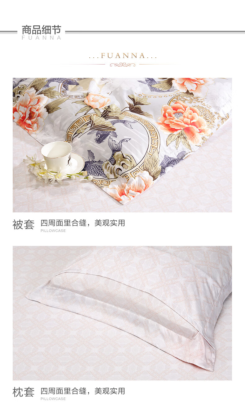 商品名称:(巨邦佑)BJ+富安娜纯棉四件套锦绣流莲 100%纯棉 透气舒爽温暖睡眠鲜活印染