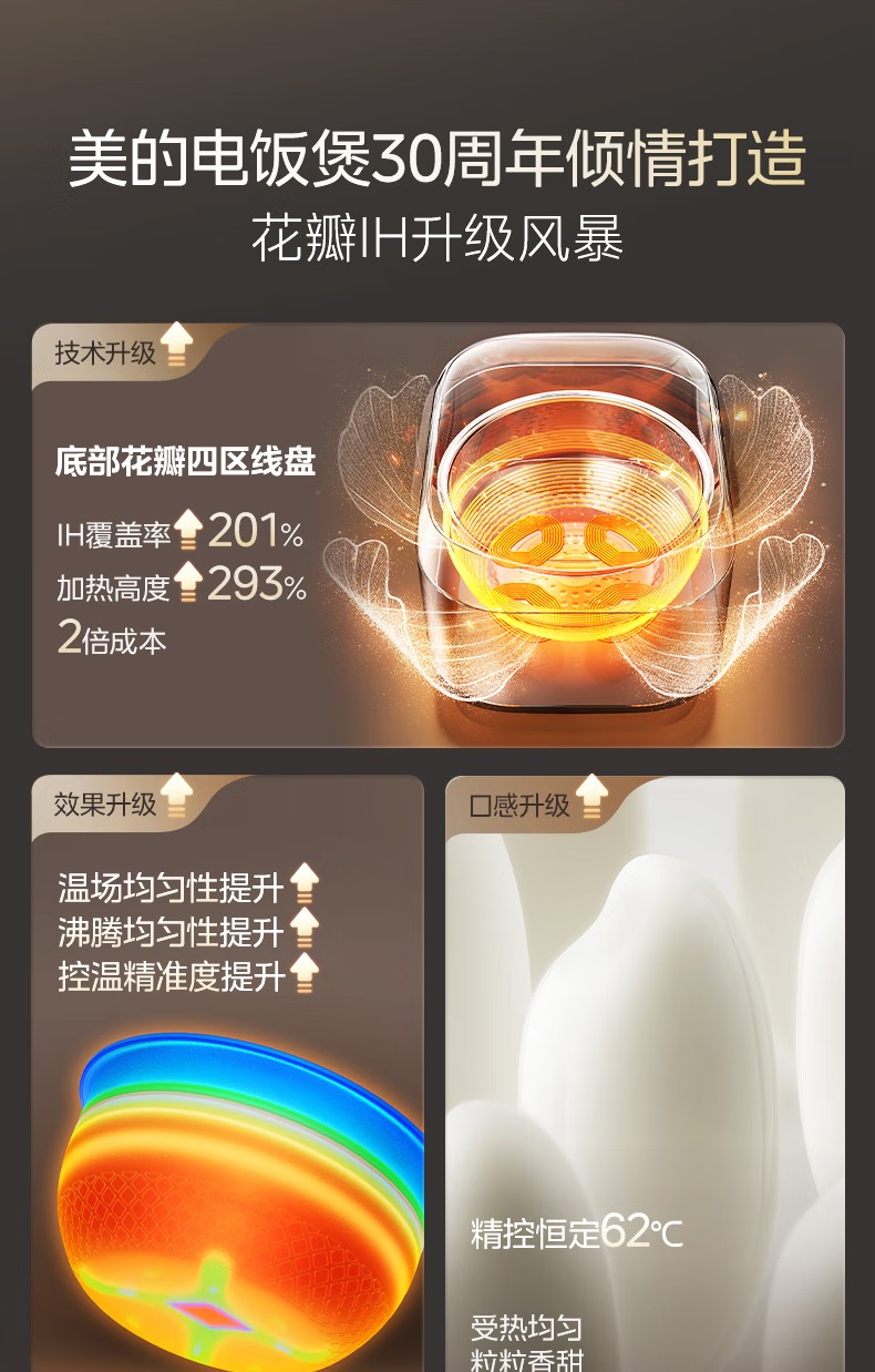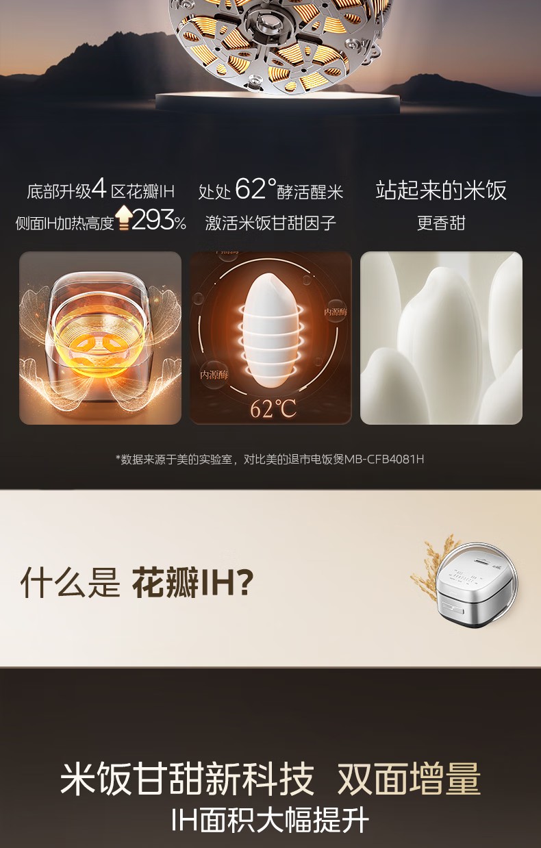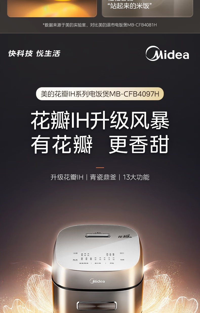 商品名称:(巨邦佑)R+美的(Midea)电饭煲CFB4097H花瓣IH系列智能电磁加热家用电饭锅大火力米饭锅煮小米粥加厚青瓷鼎釜