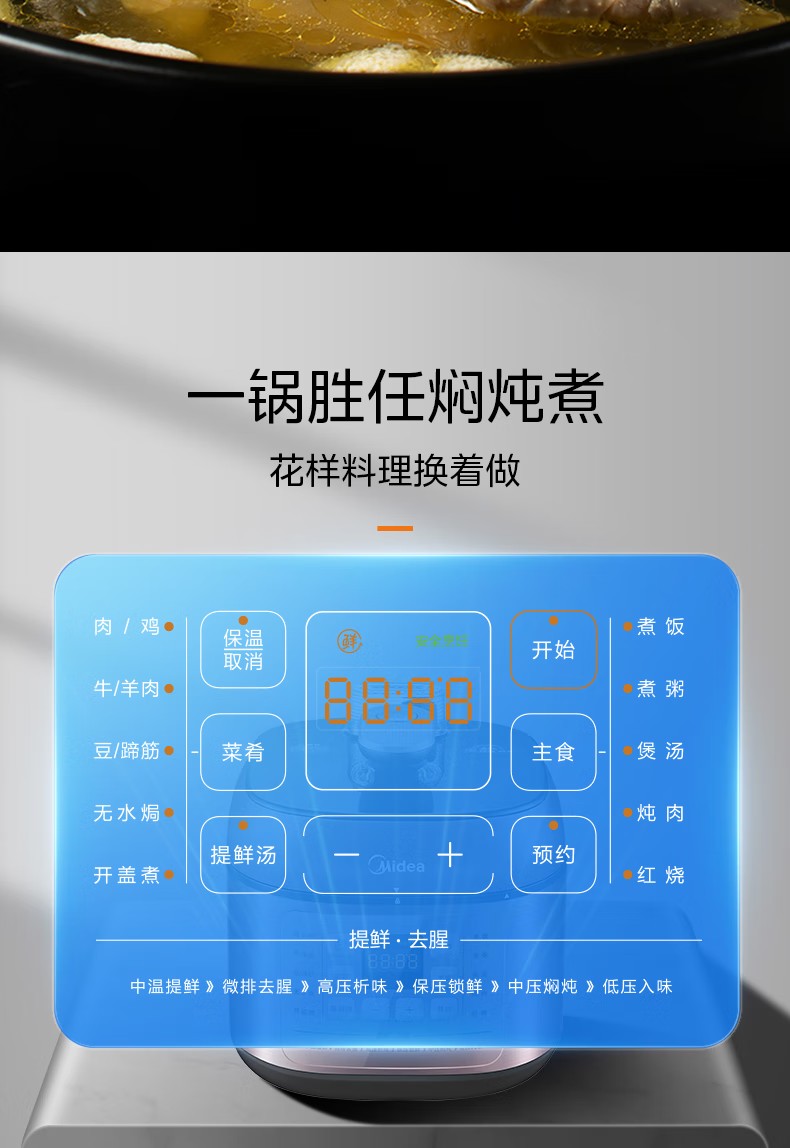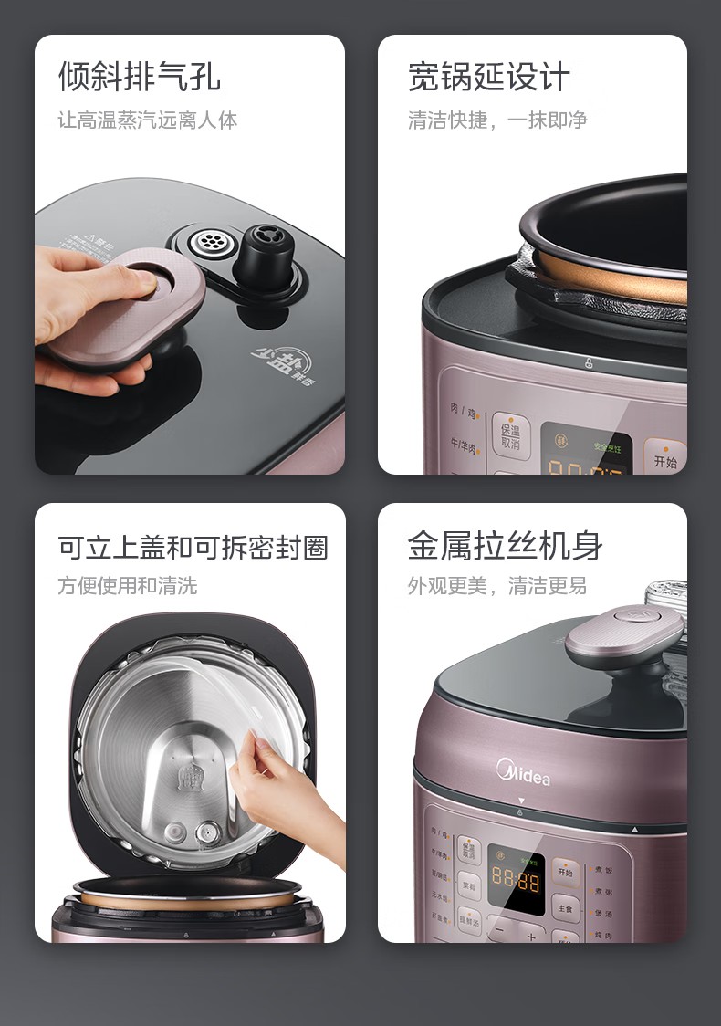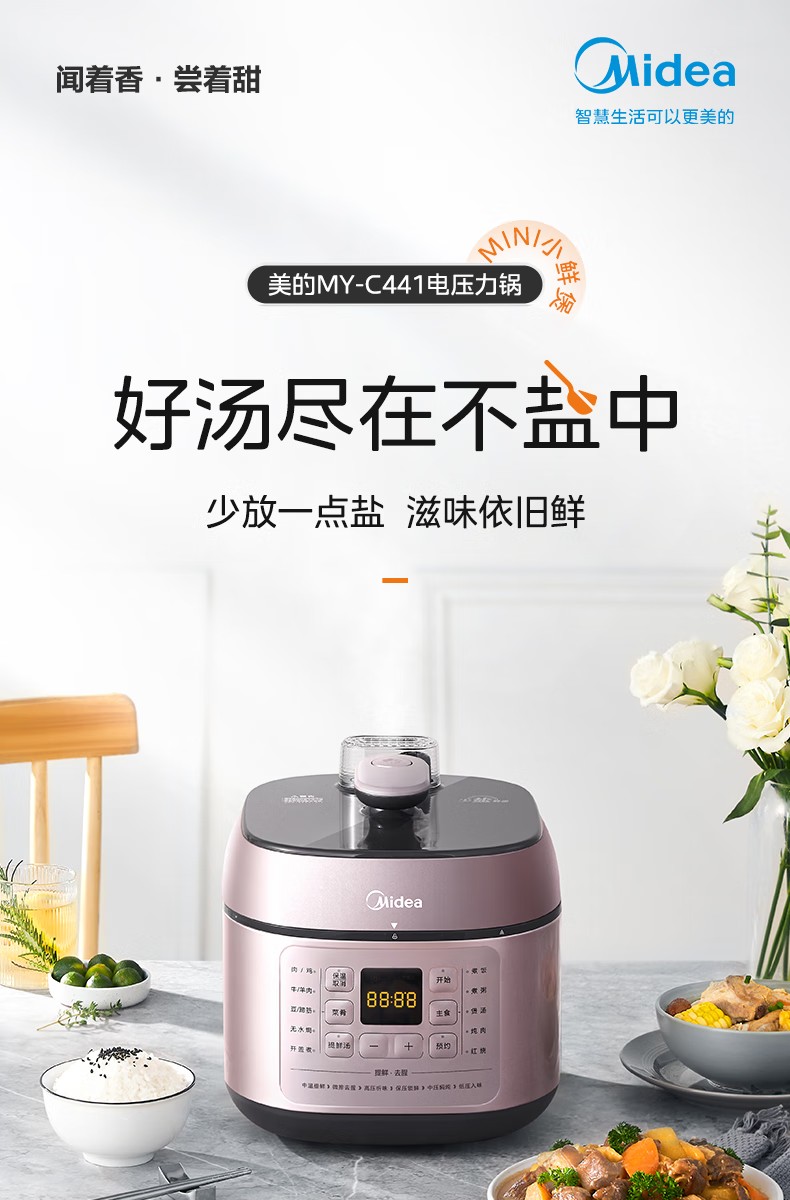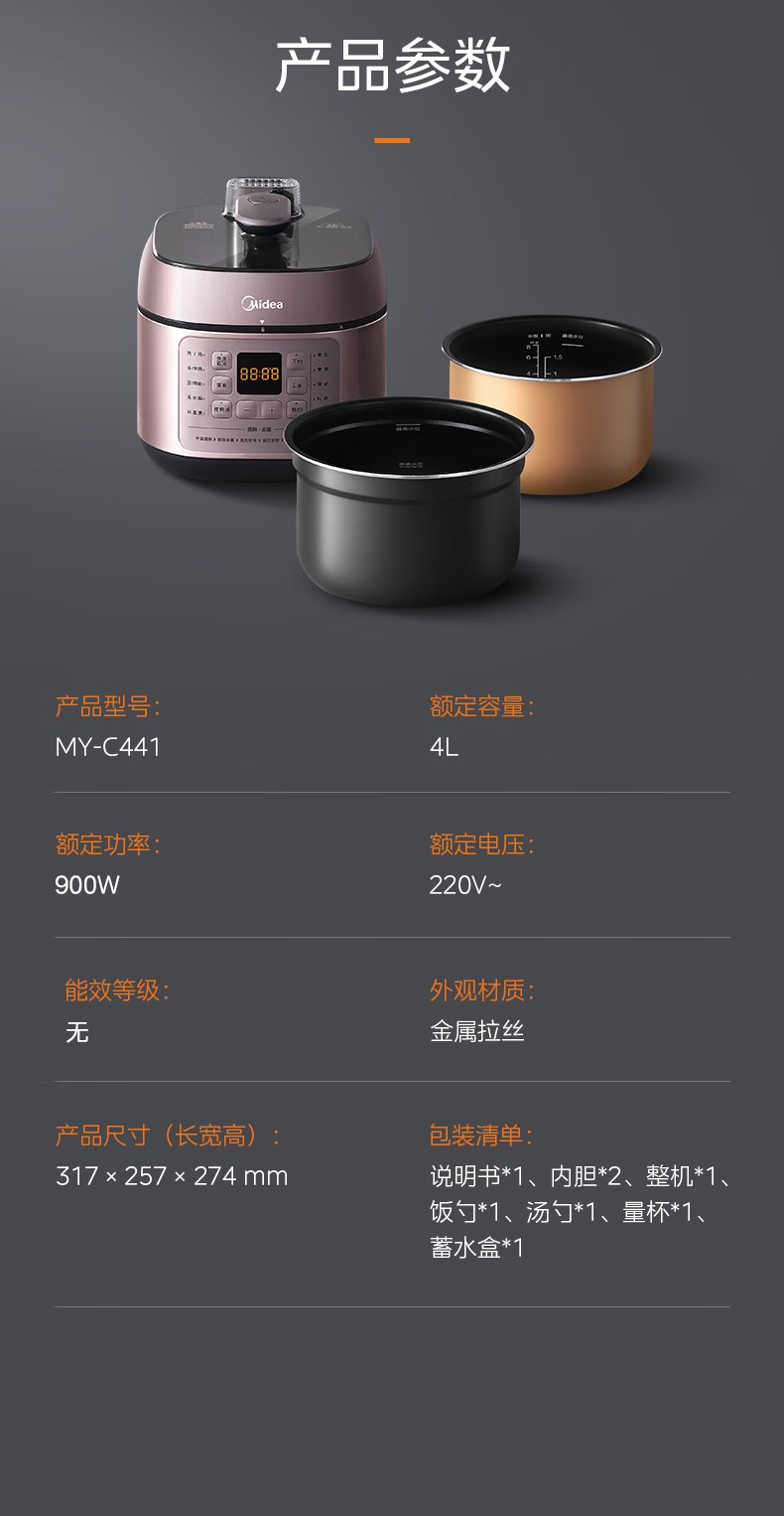 商品名称:(巨邦佑)R+美的(Midea)电压力锅YLC441高压电饭煲 智能预约 不粘双胆 一键排气 煲汤炖肉煮饭 门店同款 【少盐提鲜】双胆不串味 4L