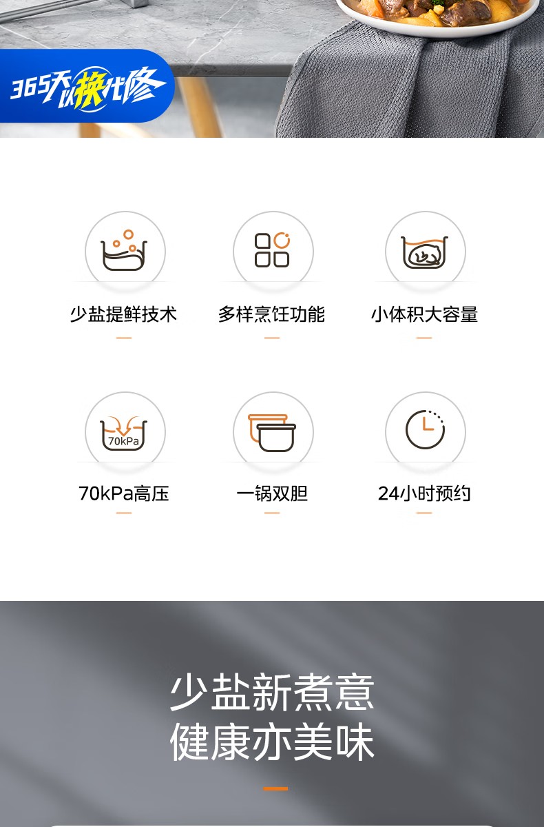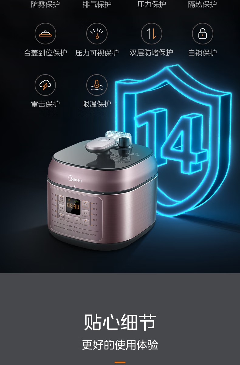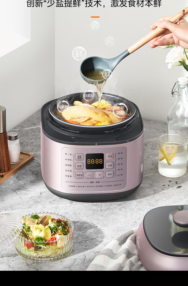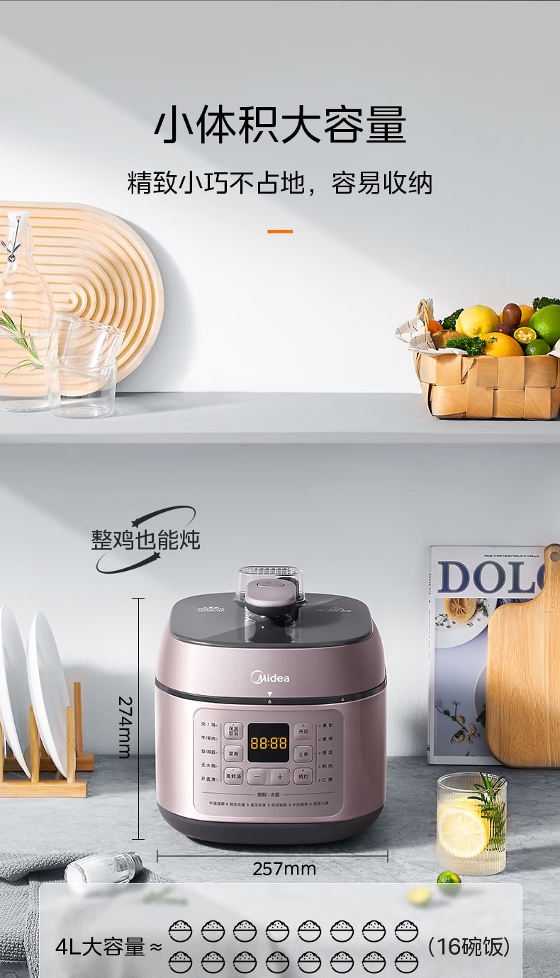 商品名称:(巨邦佑)R+美的(Midea)电压力锅YLC441高压电饭煲 智能预约 不粘双胆 一键排气 煲汤炖肉煮饭 门店同款 【少盐提鲜】双胆不串味 4L