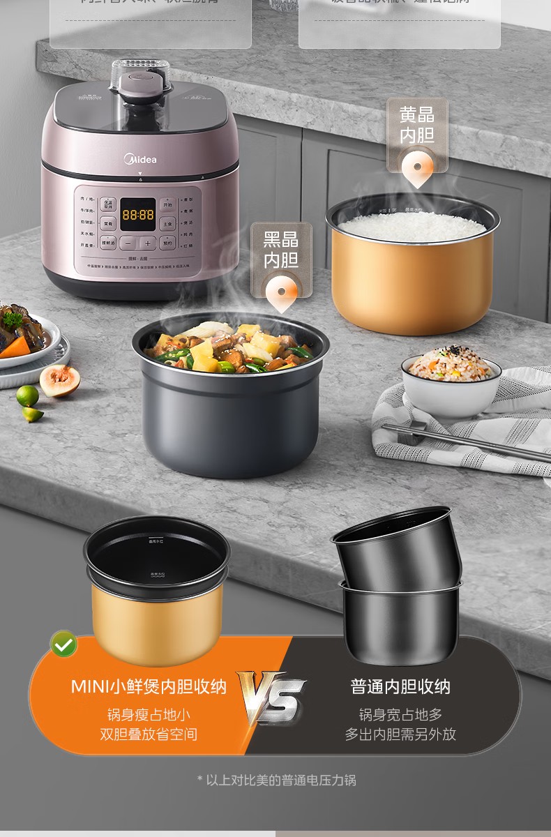 (巨邦佑)R+美的(Midea)电压力锅YLC441高压电饭煲 智能预约 不粘双胆 一键排气 煲汤炖肉煮饭 门店同款 【少盐提鲜】双胆不串味 4L