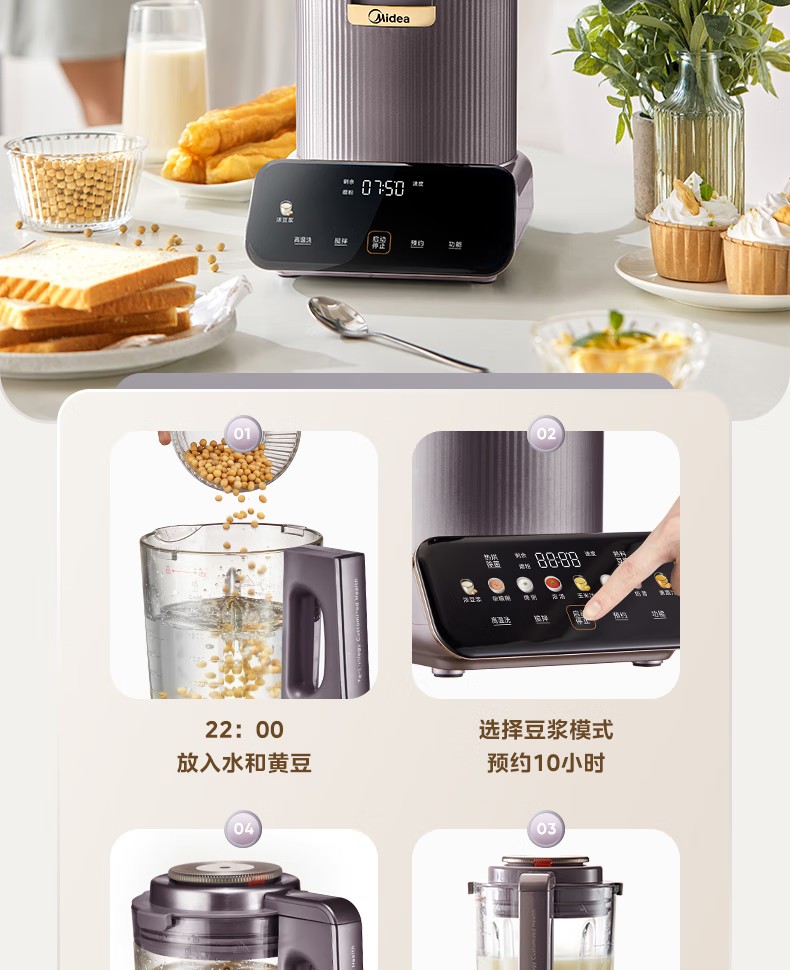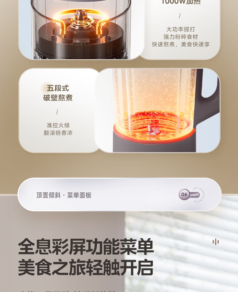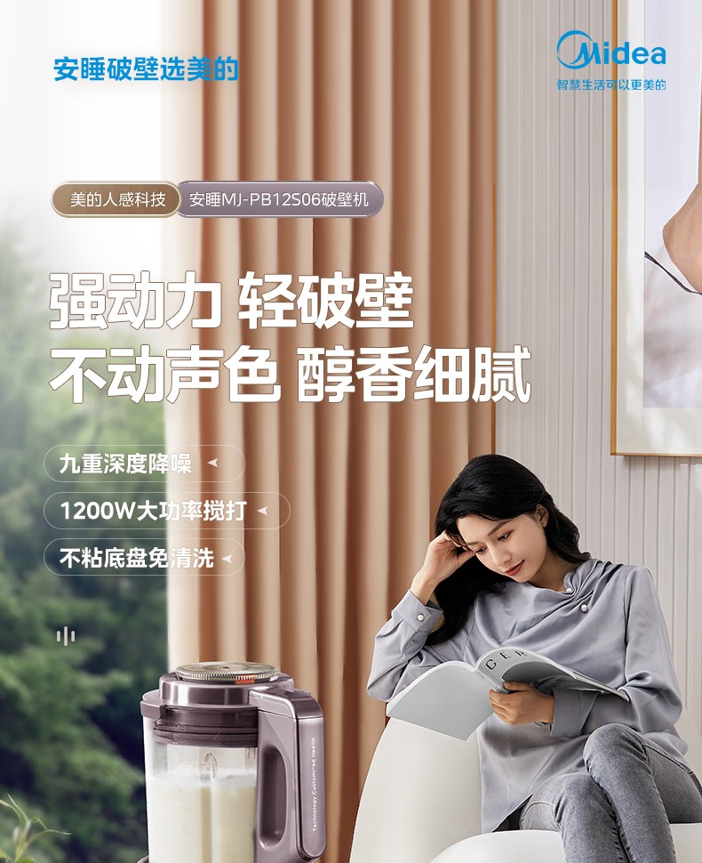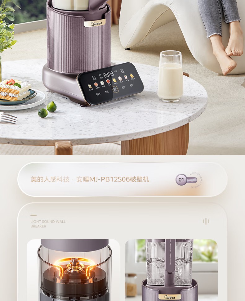 (巨邦佑)R+美的(Midea)破壁机PB12S06 家用加热料理轻音智频电机彩屏防溢分体保温高硼硅触摸豆浆机线下同款