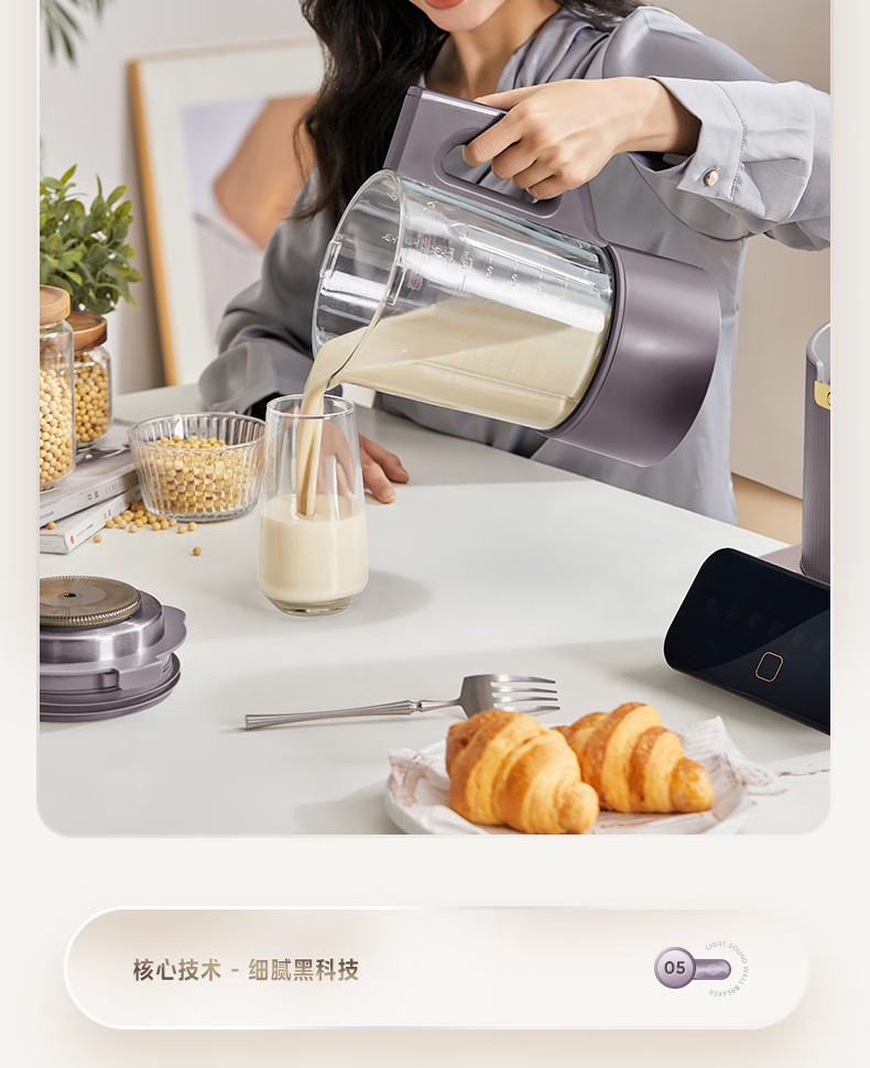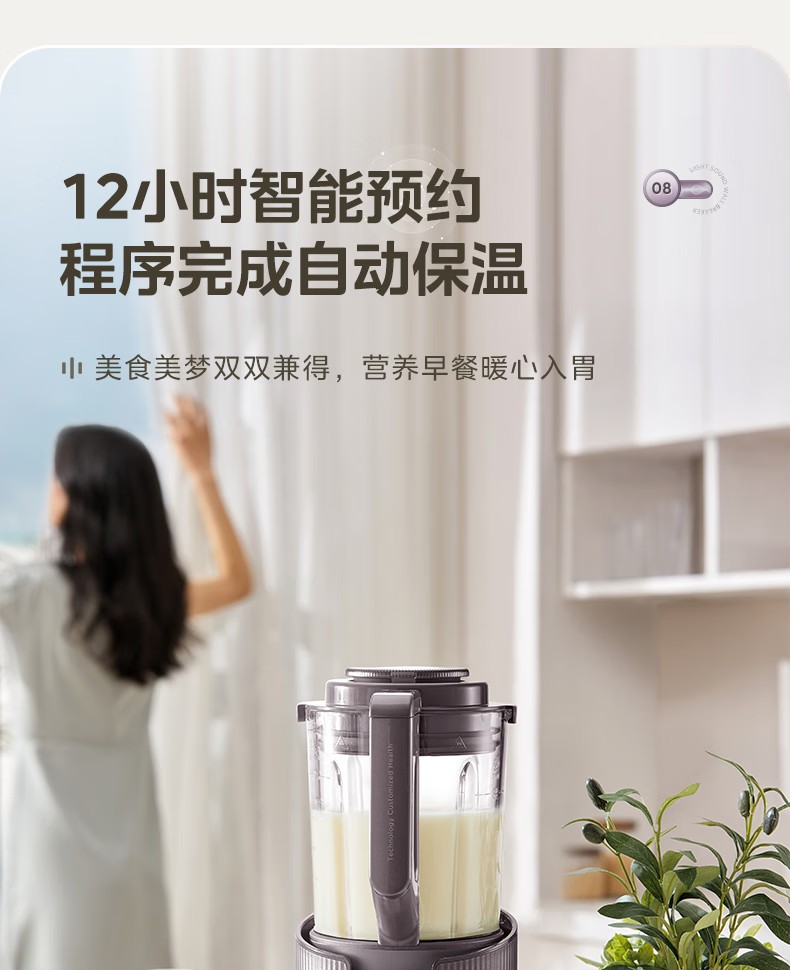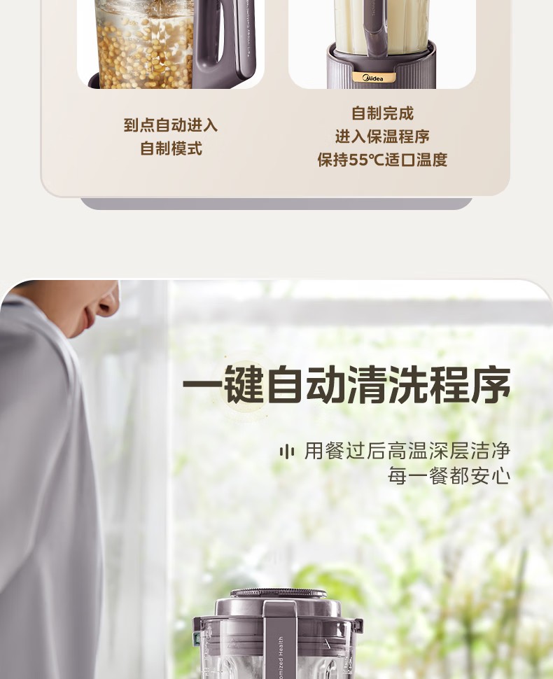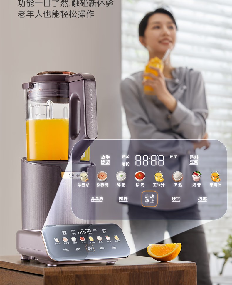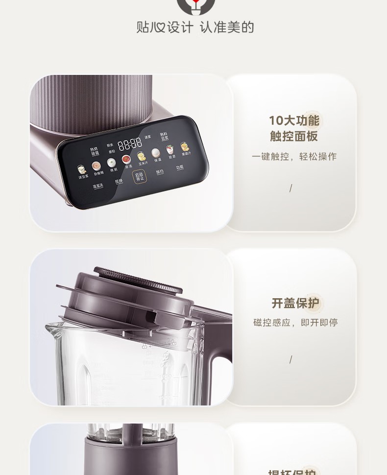 (巨邦佑)R+美的(Midea)破壁机PB12S06 家用加热料理轻音智频电机彩屏防溢分体保温高硼硅触摸豆浆机线下同款