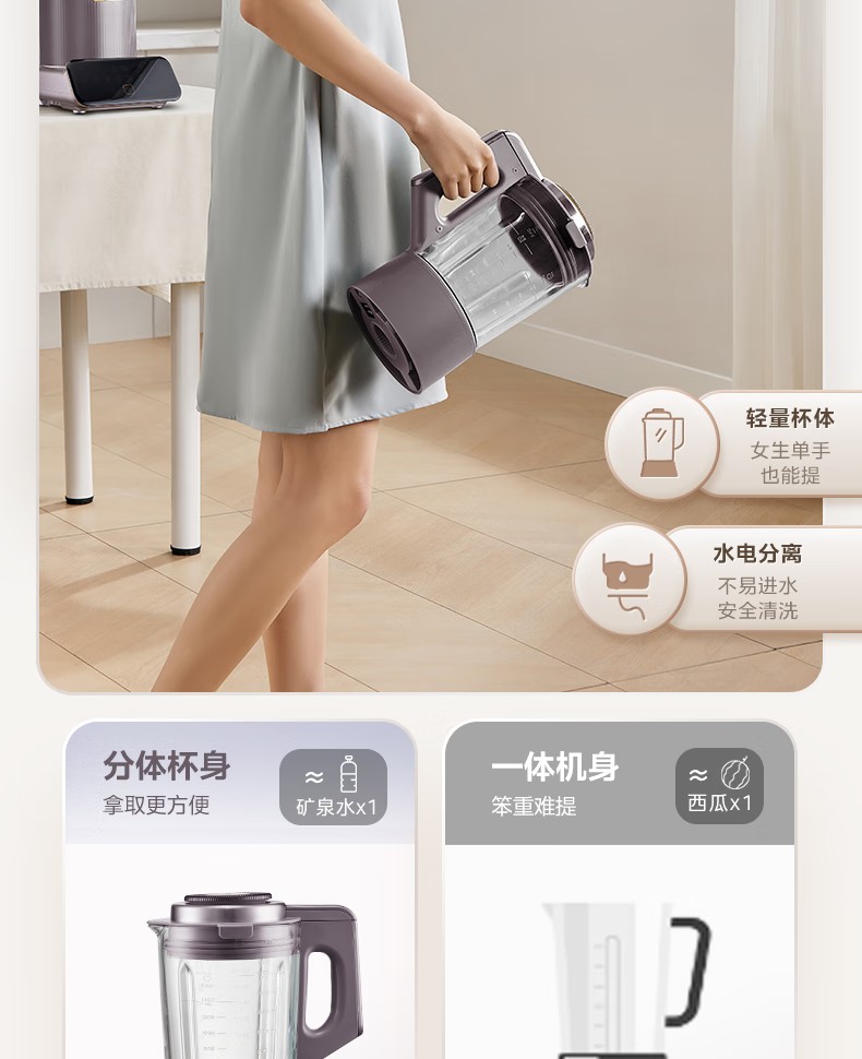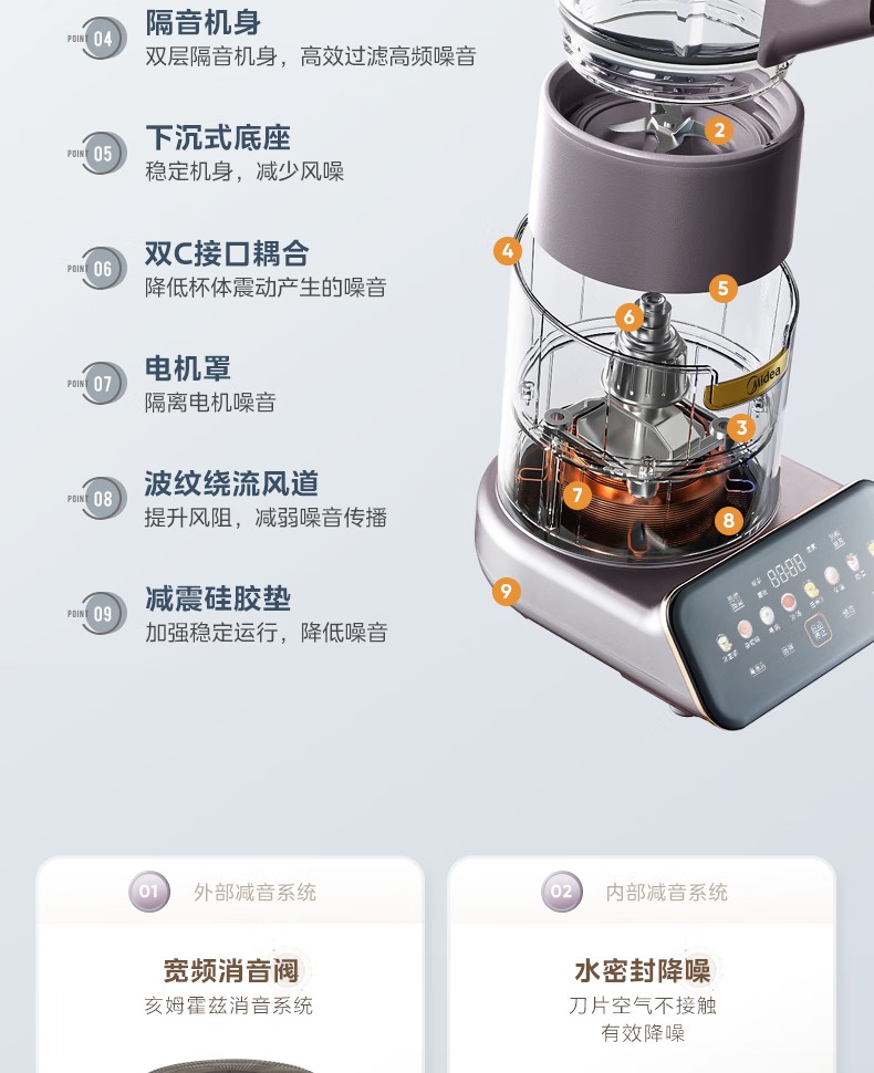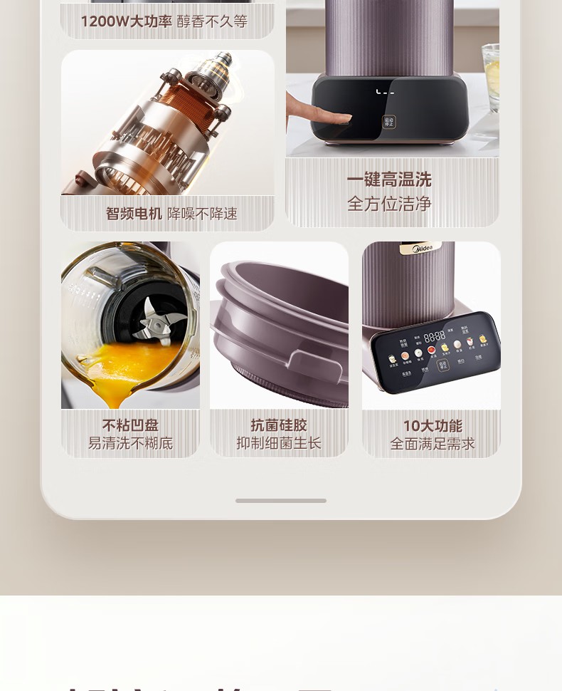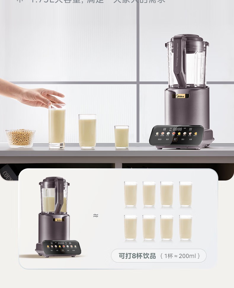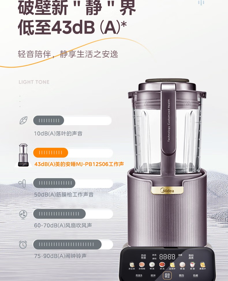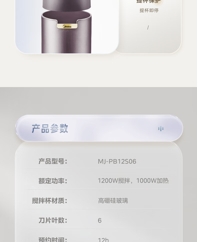 商品名称:(巨邦佑)R+美的(Midea)破壁机PB12S06 家用加热料理轻音智频电机彩屏防溢分体保温高硼硅触摸豆浆机线下同款