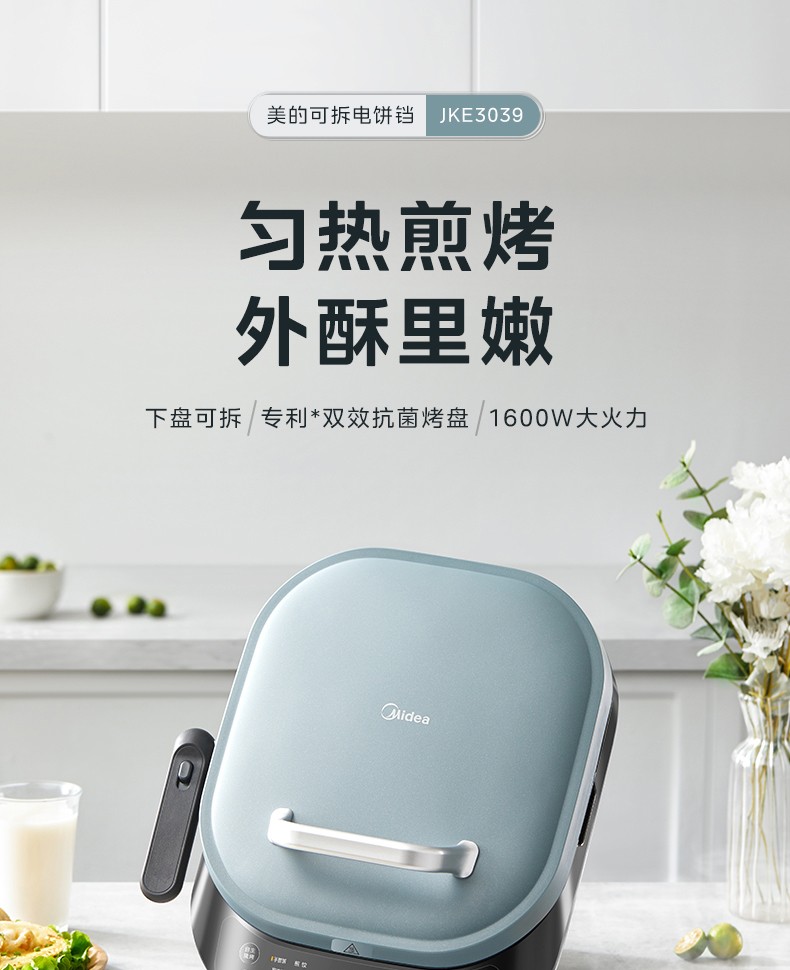 (巨邦佑)R+美的(Midea)电饼铛MC-JKE3039双面加热煎烤机可拆卸全自动多功能家用烙饼锅加深悬浮烤盘烧烤大功率