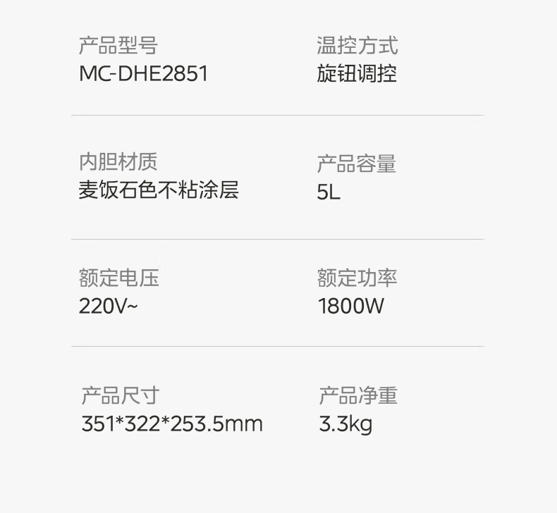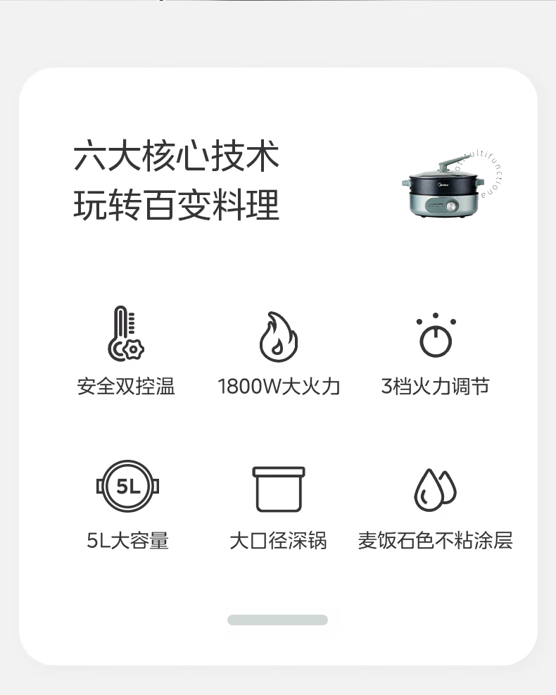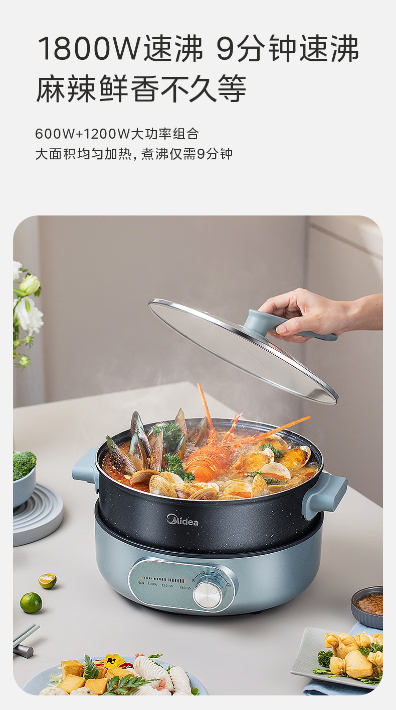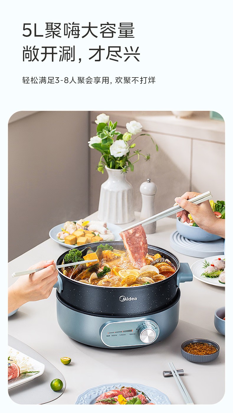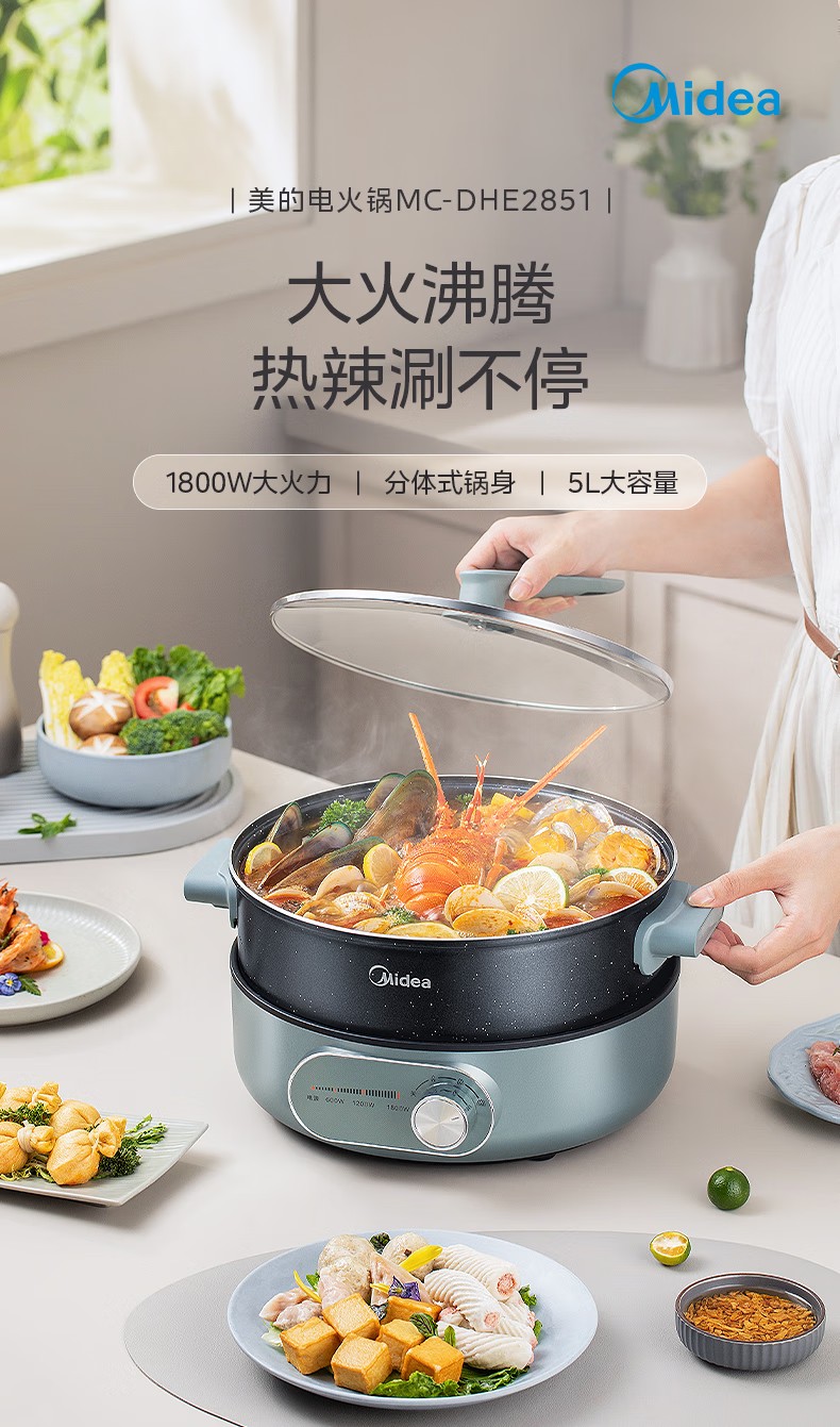 商品名称:(巨邦佑)R+美的(Midea) 电火锅MC-DHE2851 多功能用途锅电炒锅电煎锅电煮锅家用一锅多用9分钟速沸火锅专用锅大容量 (5L分体锅)