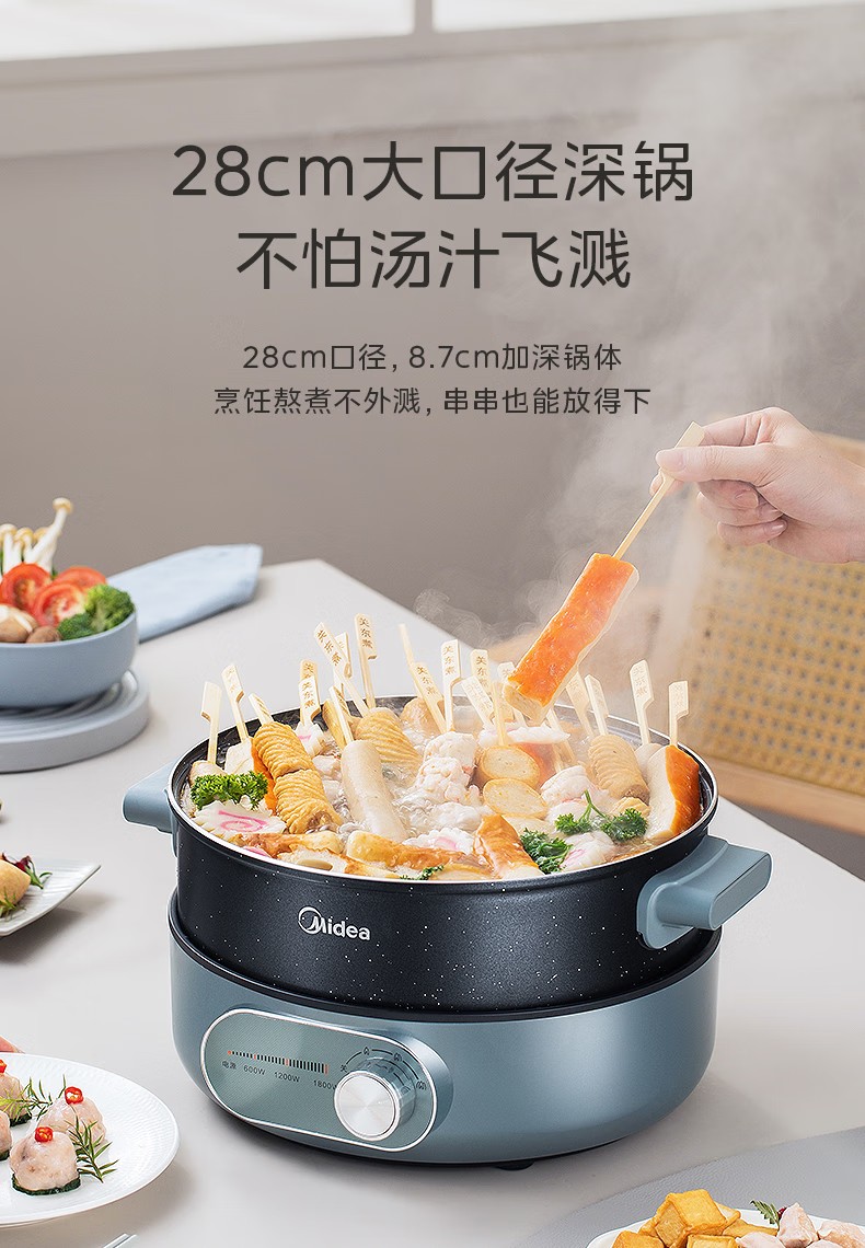 (巨邦佑)R+美的(Midea) 电火锅MC-DHE2851 多功能用途锅电炒锅电煎锅电煮锅家用一锅多用9分钟速沸火锅专用锅大容量 (5L分体锅)