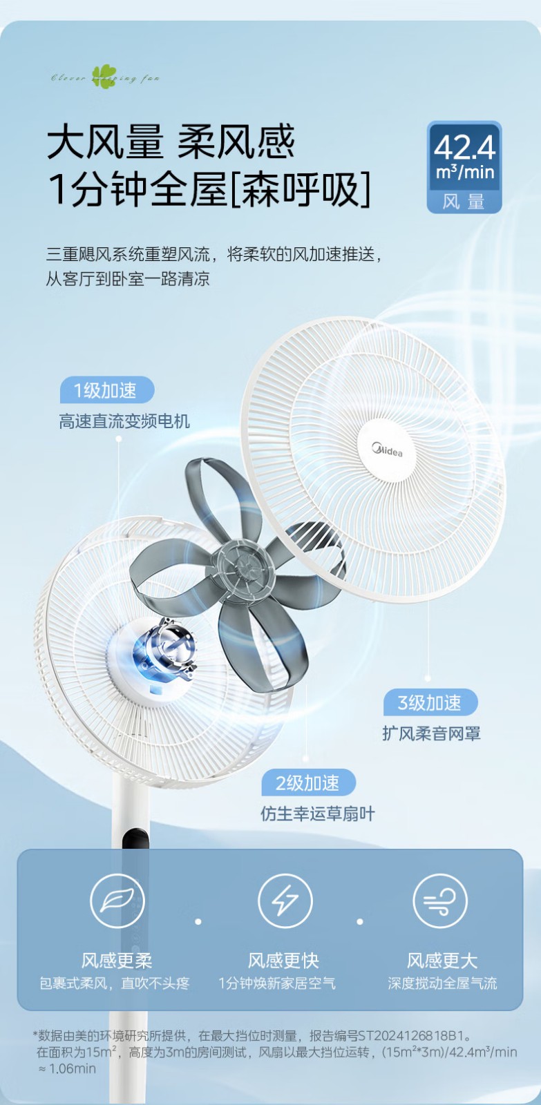 商品名称:(巨邦佑)R+美的空气循环扇FSD35STL台式电风扇落地扇立式电风扇遥控自动摇头多档 家用办公室卧室空调伴侣 线下同款 (语音+遥控+触控+小程序)