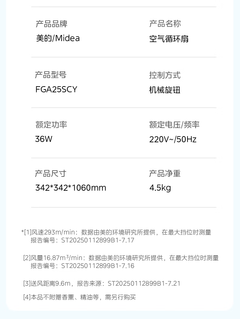 商品名称:(巨邦佑)R+美的(Midea)空气循环扇FGA25SCY电风扇大风量摇头风扇家用台式落地扇轻音卧室节能小风扇柔风对流扇