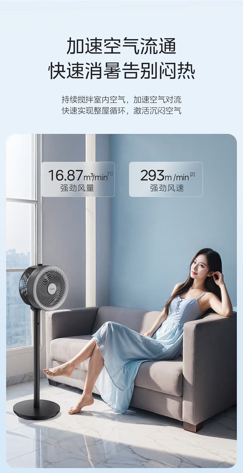 (巨邦佑)R+美的(Midea)空气循环扇FGA25SCY电风扇大风量摇头风扇家用台式落地扇轻音卧室节能小风扇柔风对流扇