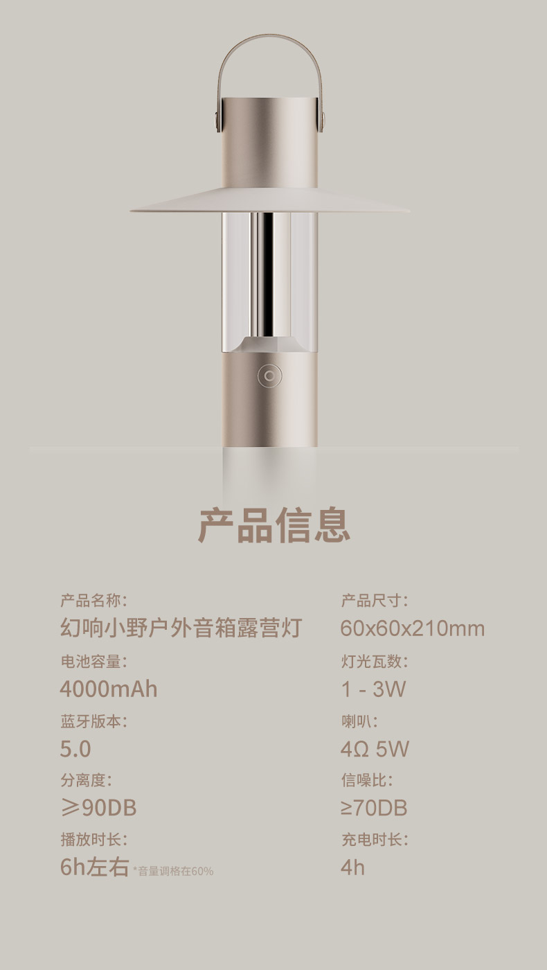 商品名称:(世星阳光)幻响(i-mu)小野露营灯 户外野营氛围帐篷灯多功能蓝牙音响露营灯