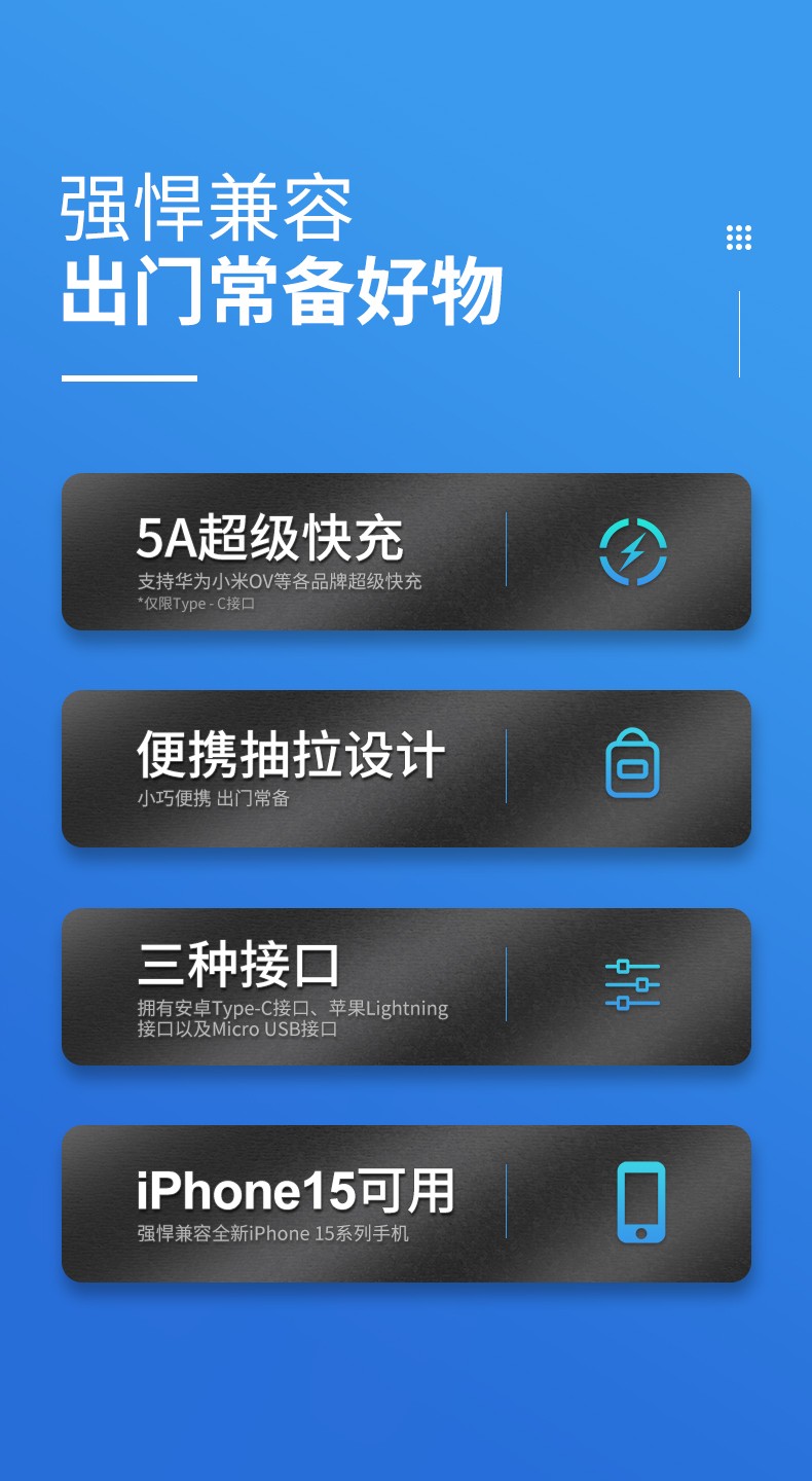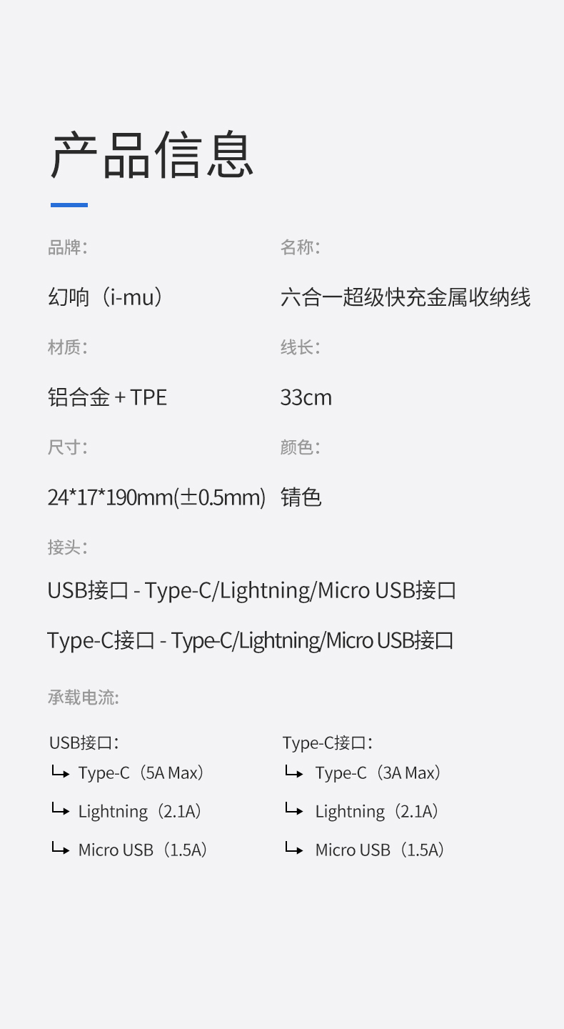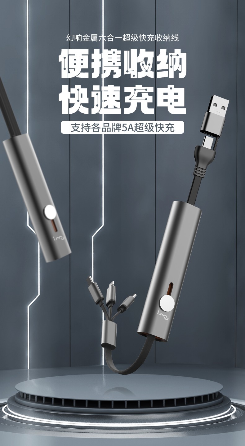 商品名称:(世星阳光)幻响(i-mu)六合一超级快充金属收纳线多合一充电线 数据线伸缩便携收纳