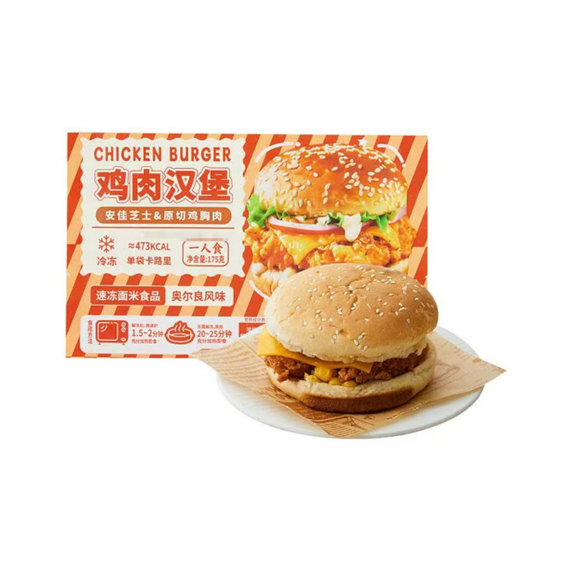 (中百)鲜在鸡肉汉堡-奥尔良175g微波即食早餐包原切鸡胸肉汉堡