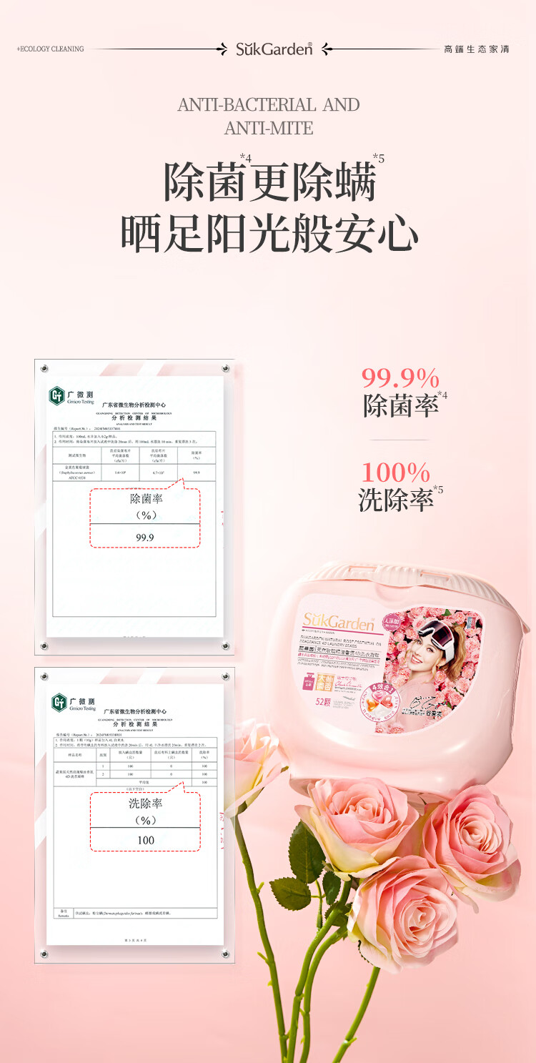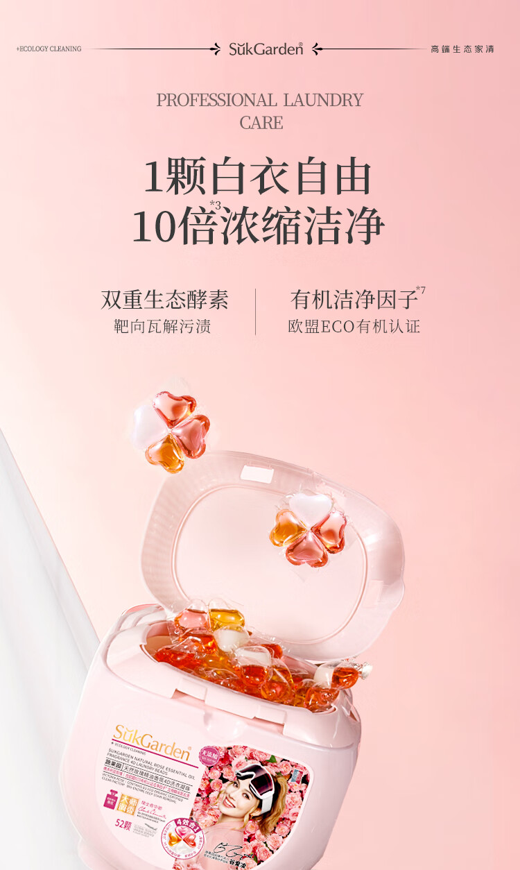 (汇景缘)SukGarden蔬果园然玫瑰精油香氛4D洗衣凝珠10*52颗*2【SGY69024】深层去渍柔顺护衣除菌除螨4效合1