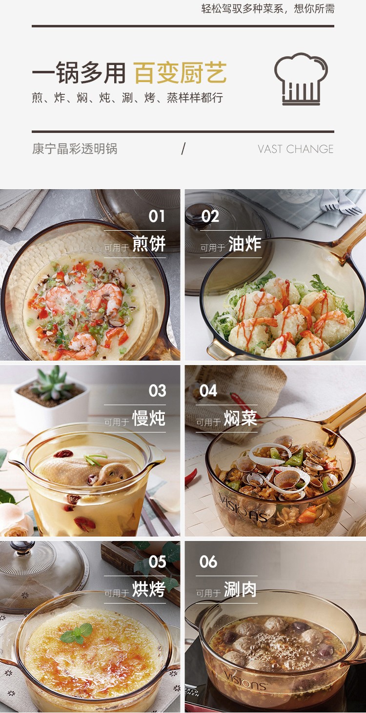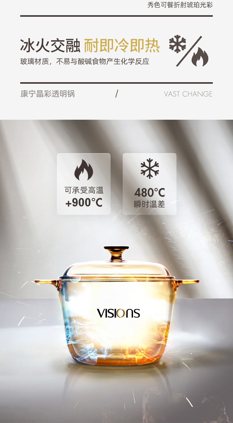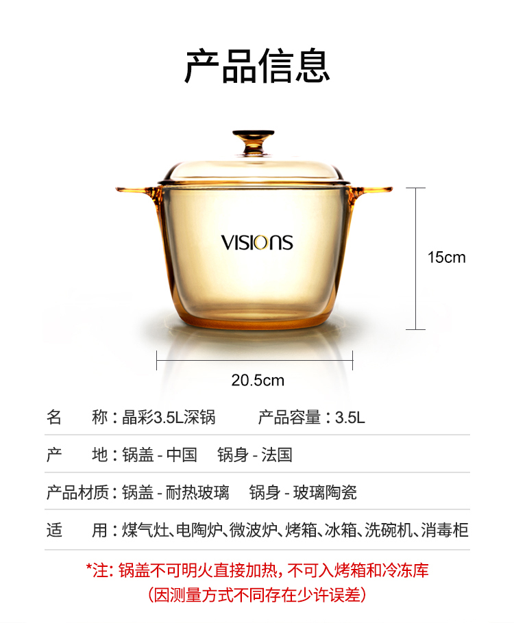 商品名称:(世星阳光)康宁 VISIONS晶彩锅(深锅)3.5L VS-35-E-LCLLNZK 一锅多用 耐受冷热聚热保温