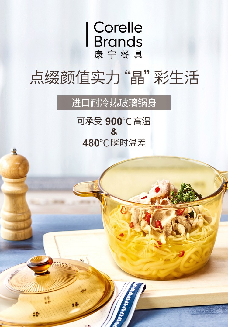 (世星阳光)康宁 VISIONS晶彩锅(深锅)3.5L VS-35-E-LCLLNZK 一锅多用 耐受冷热聚热保温