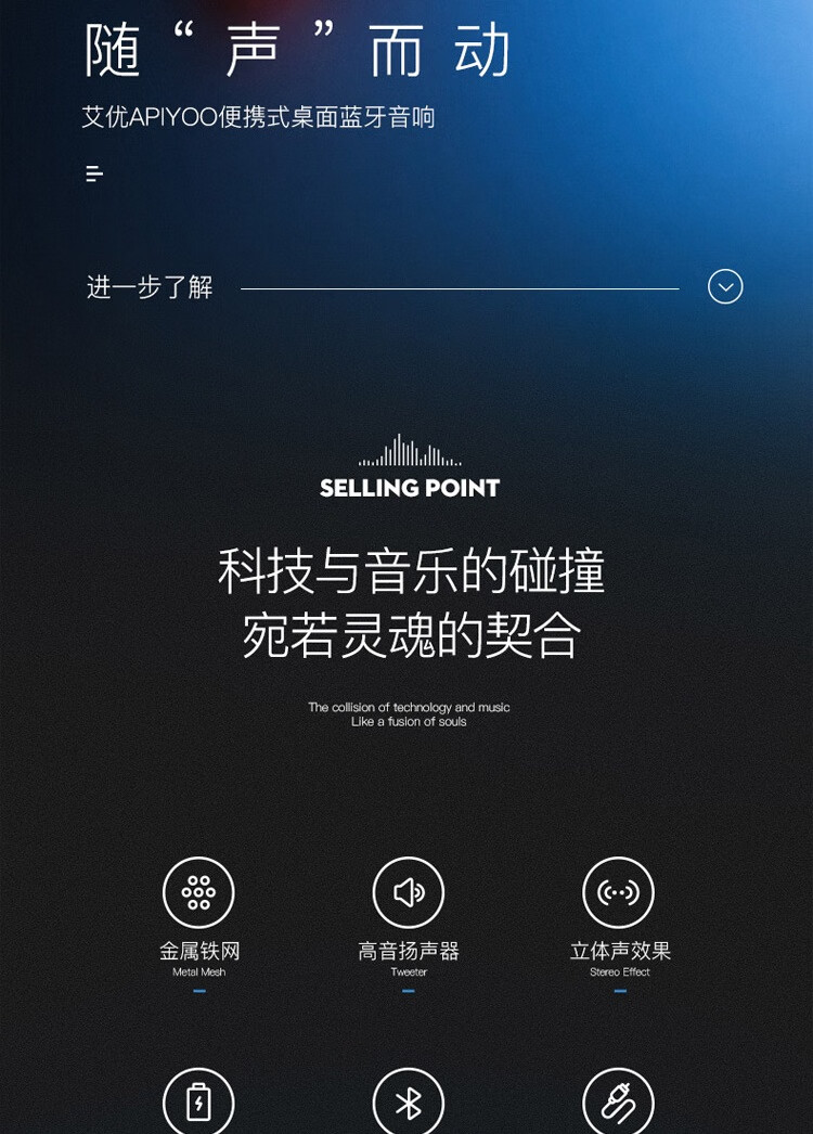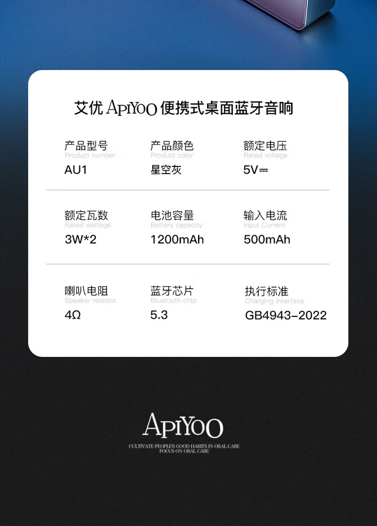 商品名称:(巨邦佑)BJ+Apiyoo艾优便携式桌面蓝牙音响AU1 内置电池超长续航