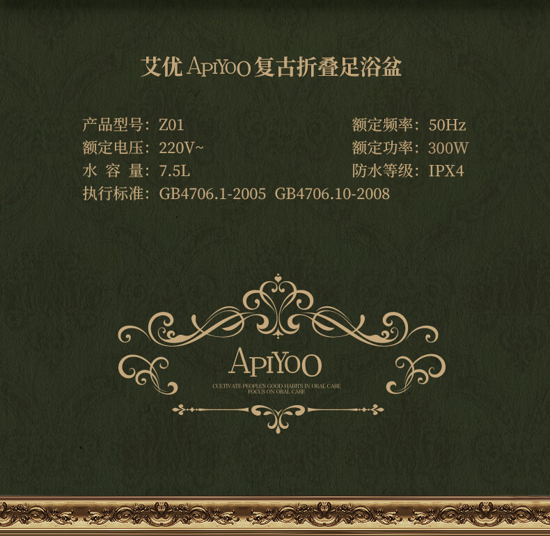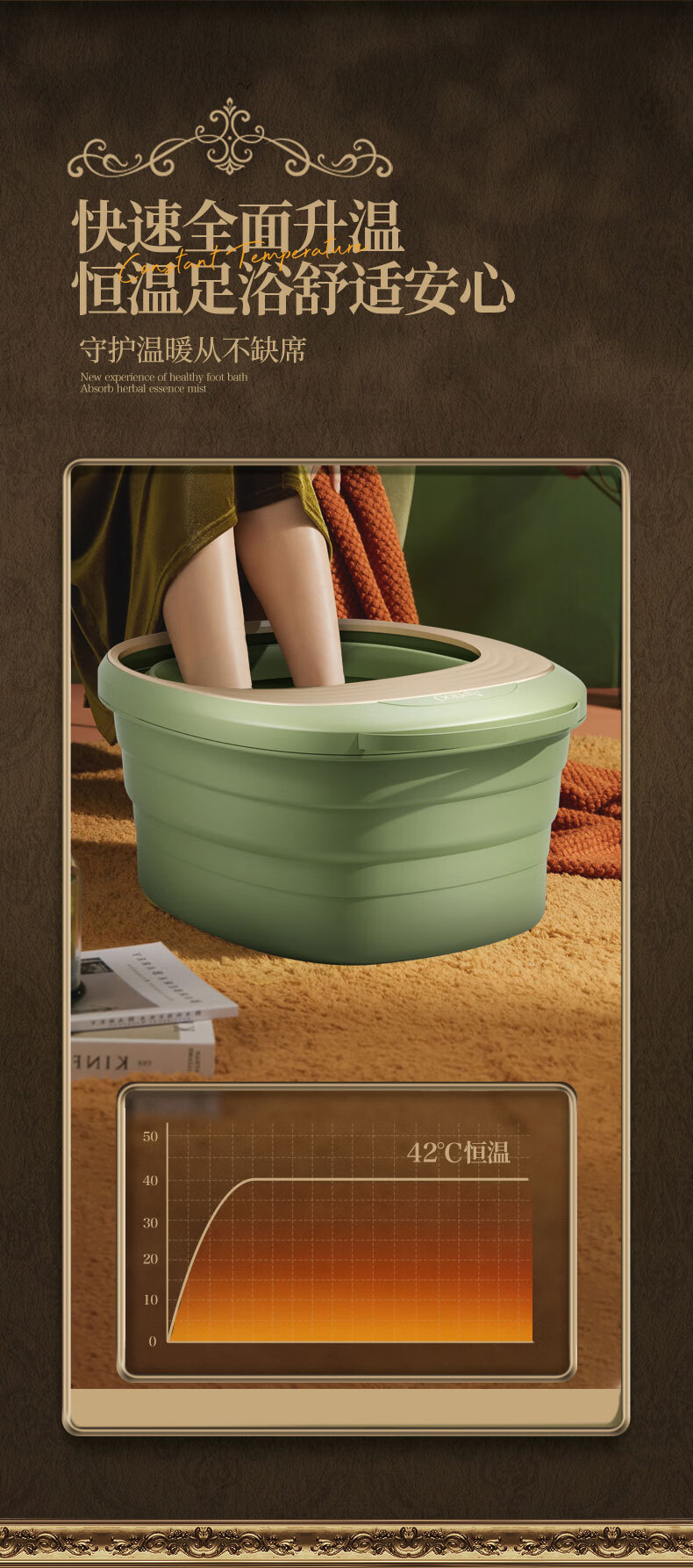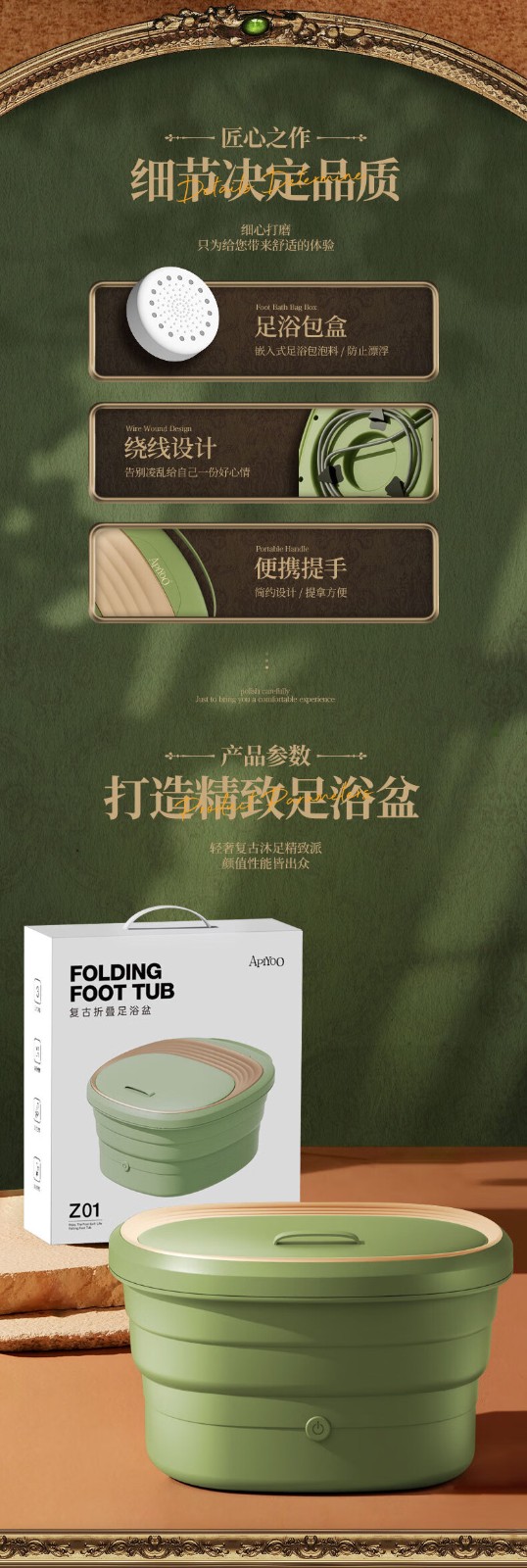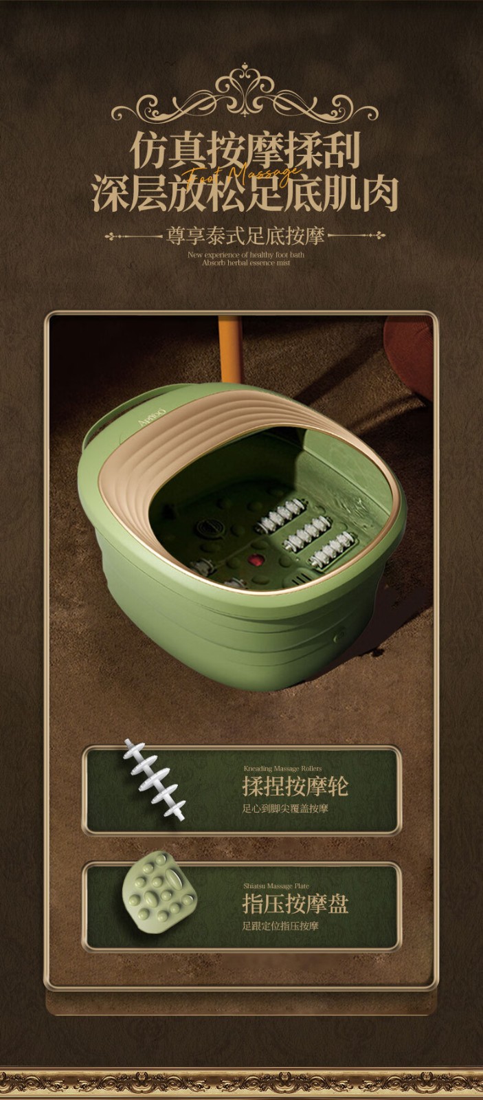 商品名称:(巨邦佑)BJ+Apiyoo艾优复古折叠足浴盆Z01 泡脚桶电动洗脚盆加热全自动按摩恒温足疗家用母亲礼物实用