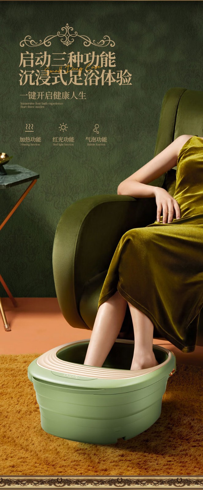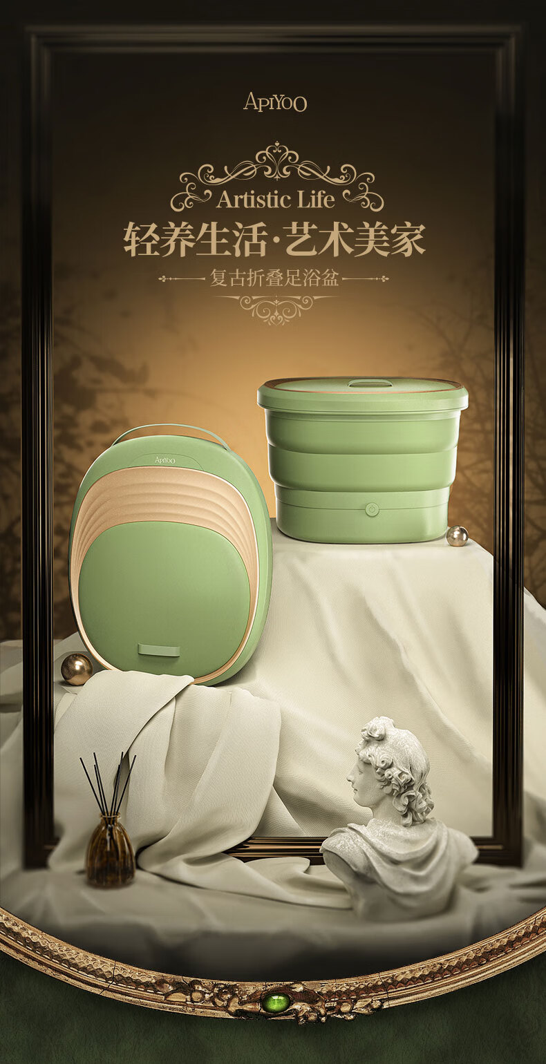 (巨邦佑)BJ+Apiyoo艾优复古折叠足浴盆Z01 泡脚桶电动洗脚盆加热全自动按摩恒温足疗家用母亲礼物实用