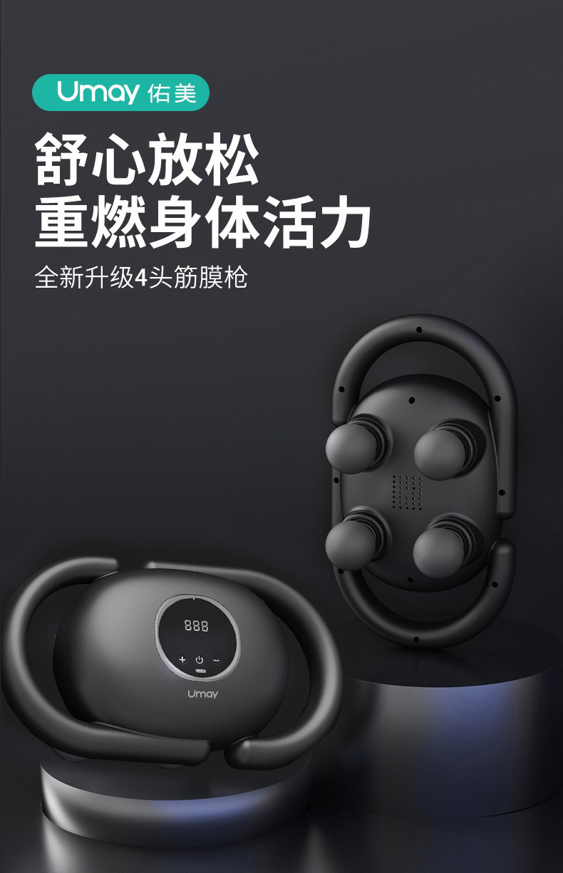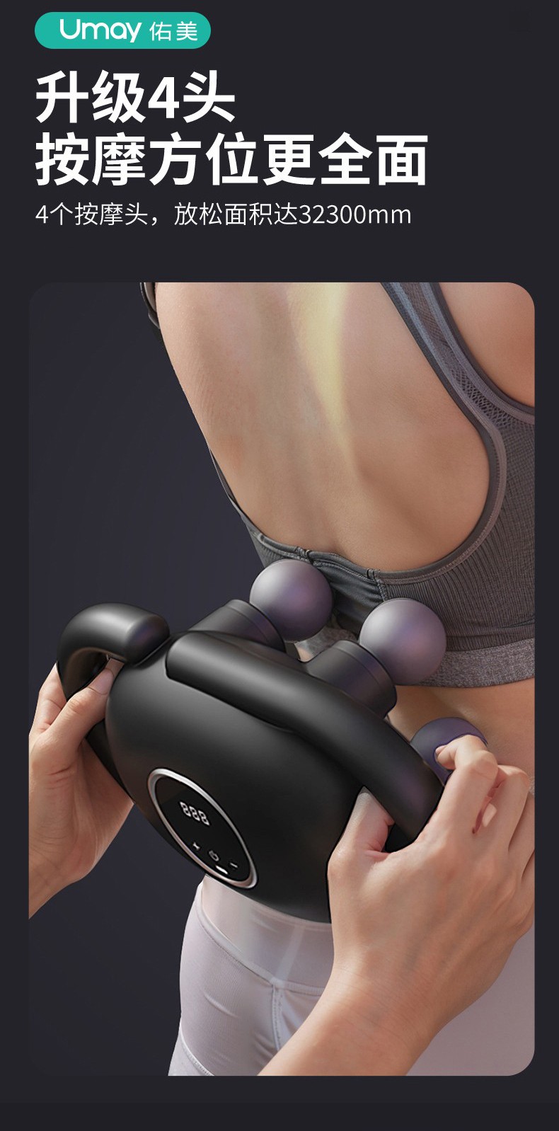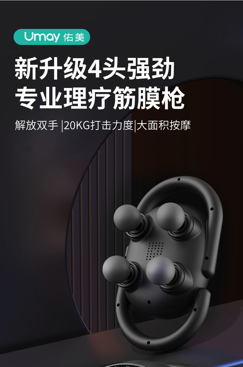 (巨邦佑)BJ+Umay佑美筋膜枪四头JMQ012-01 专业理疗筋膜枪大面积大容量电池长久续航