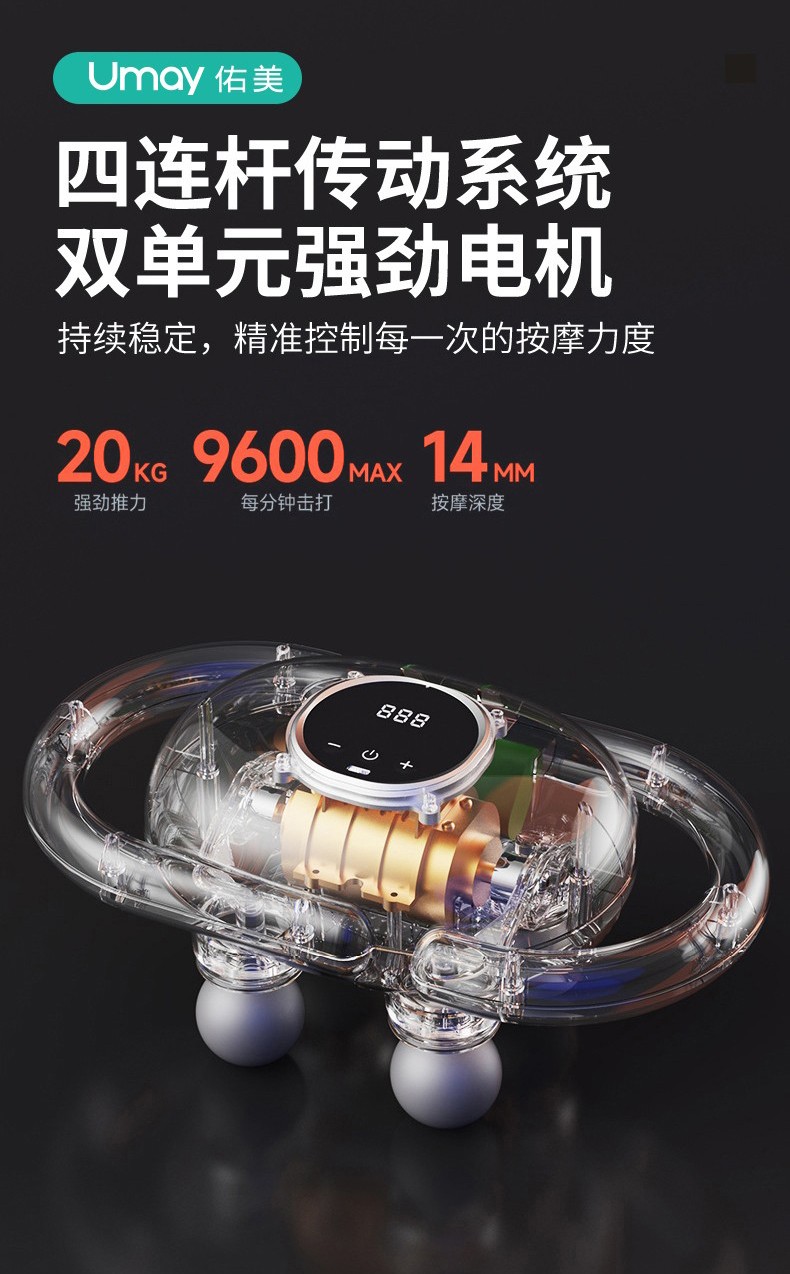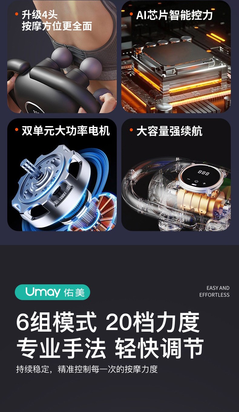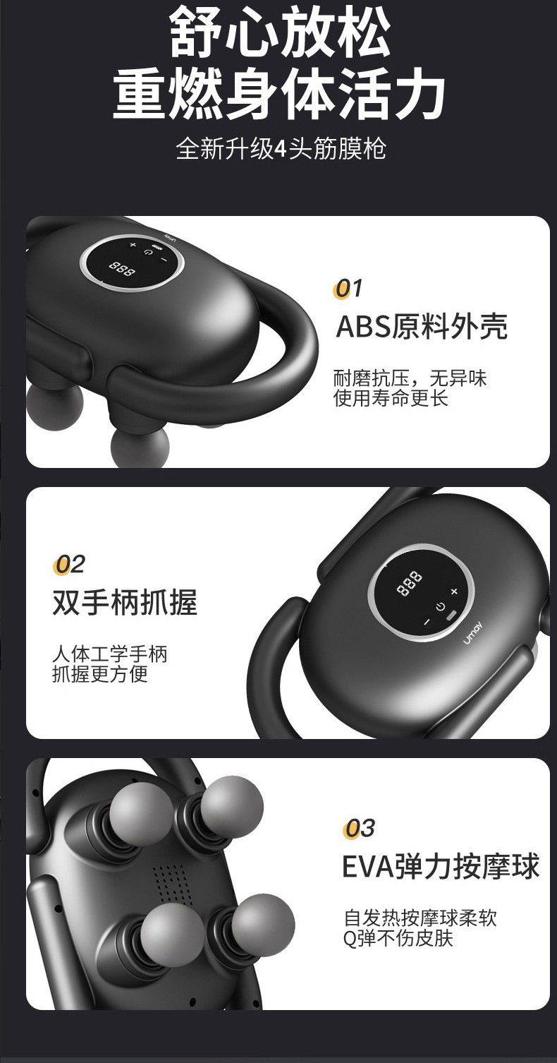 (巨邦佑)BJ+Umay佑美筋膜枪四头JMQ012-01 专业理疗筋膜枪大面积大容量电池长久续航